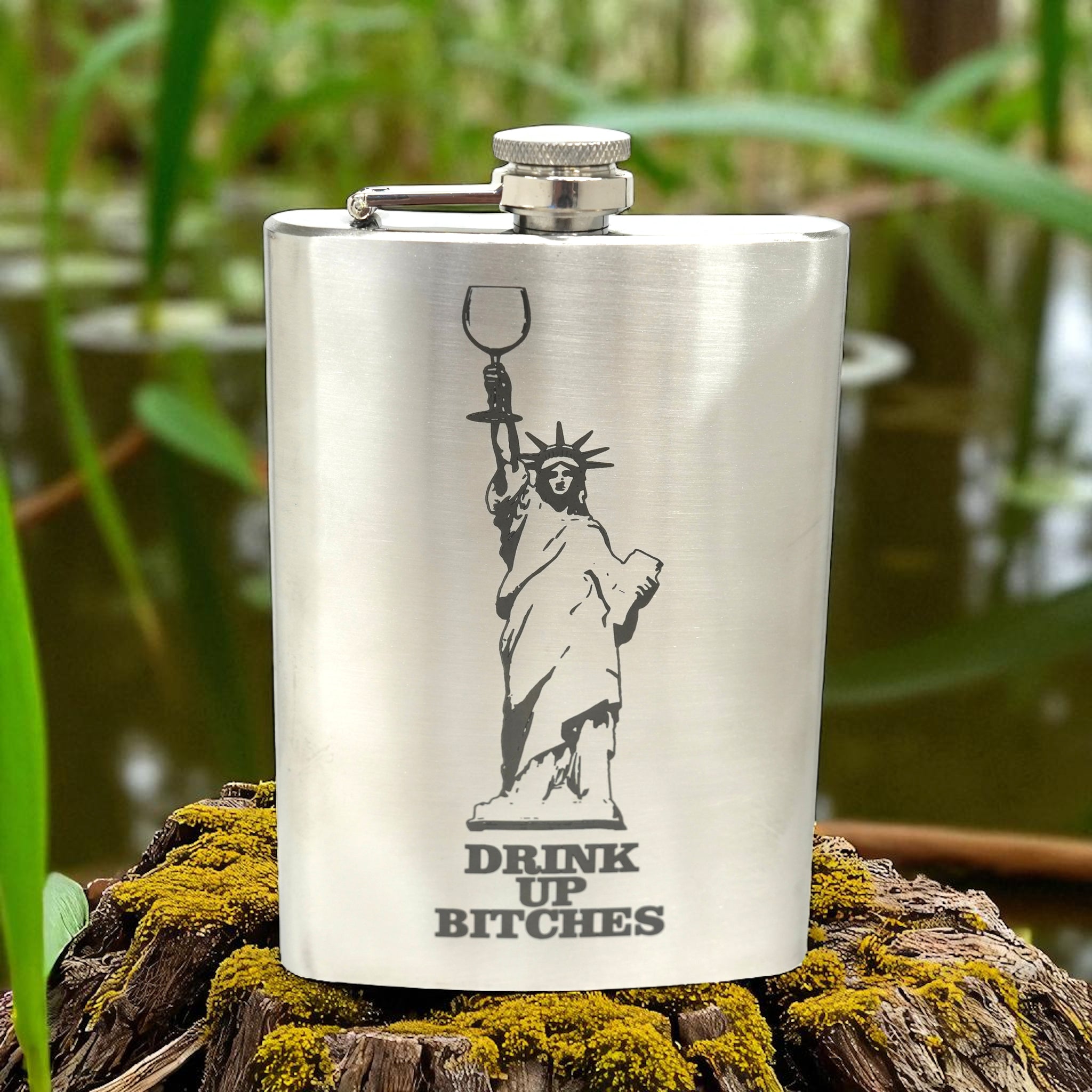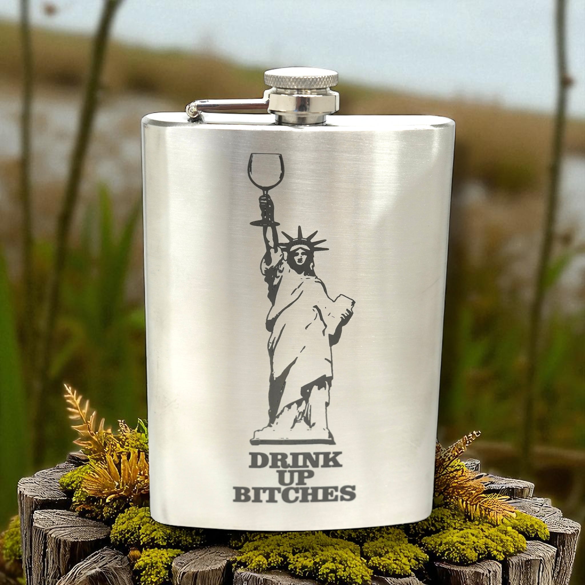 8oz Drink Up Bitches - Statue of Liberty Stainless Steel Flask