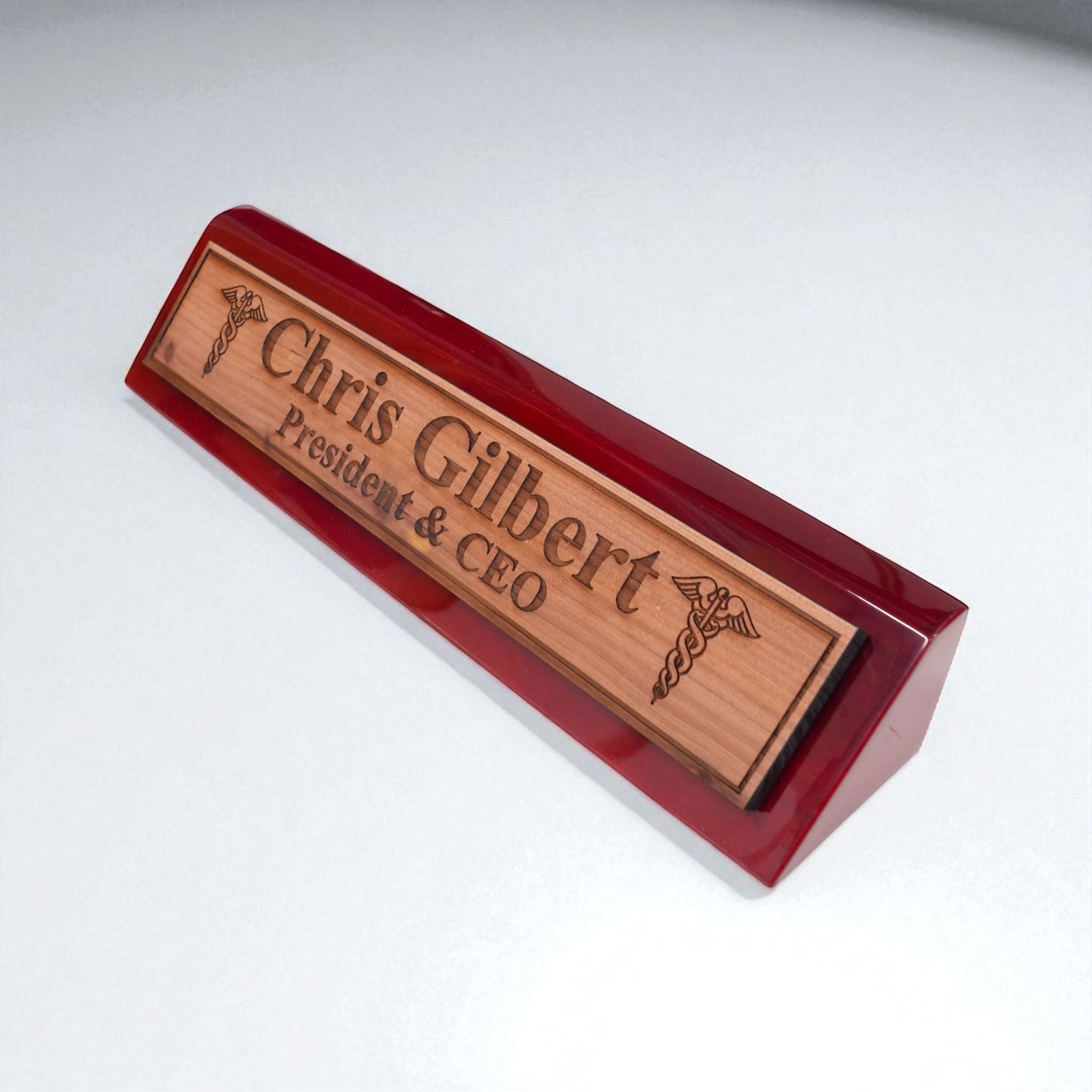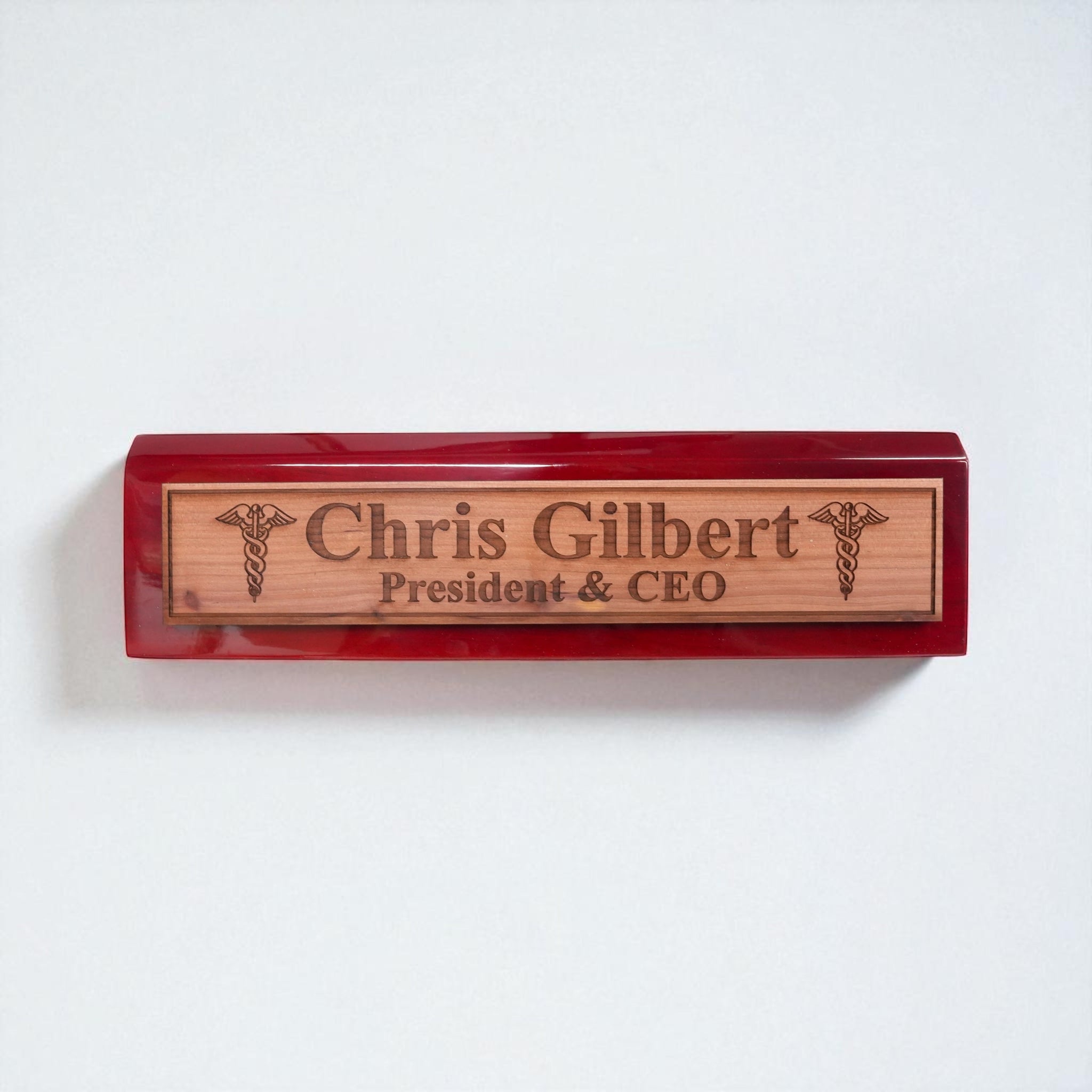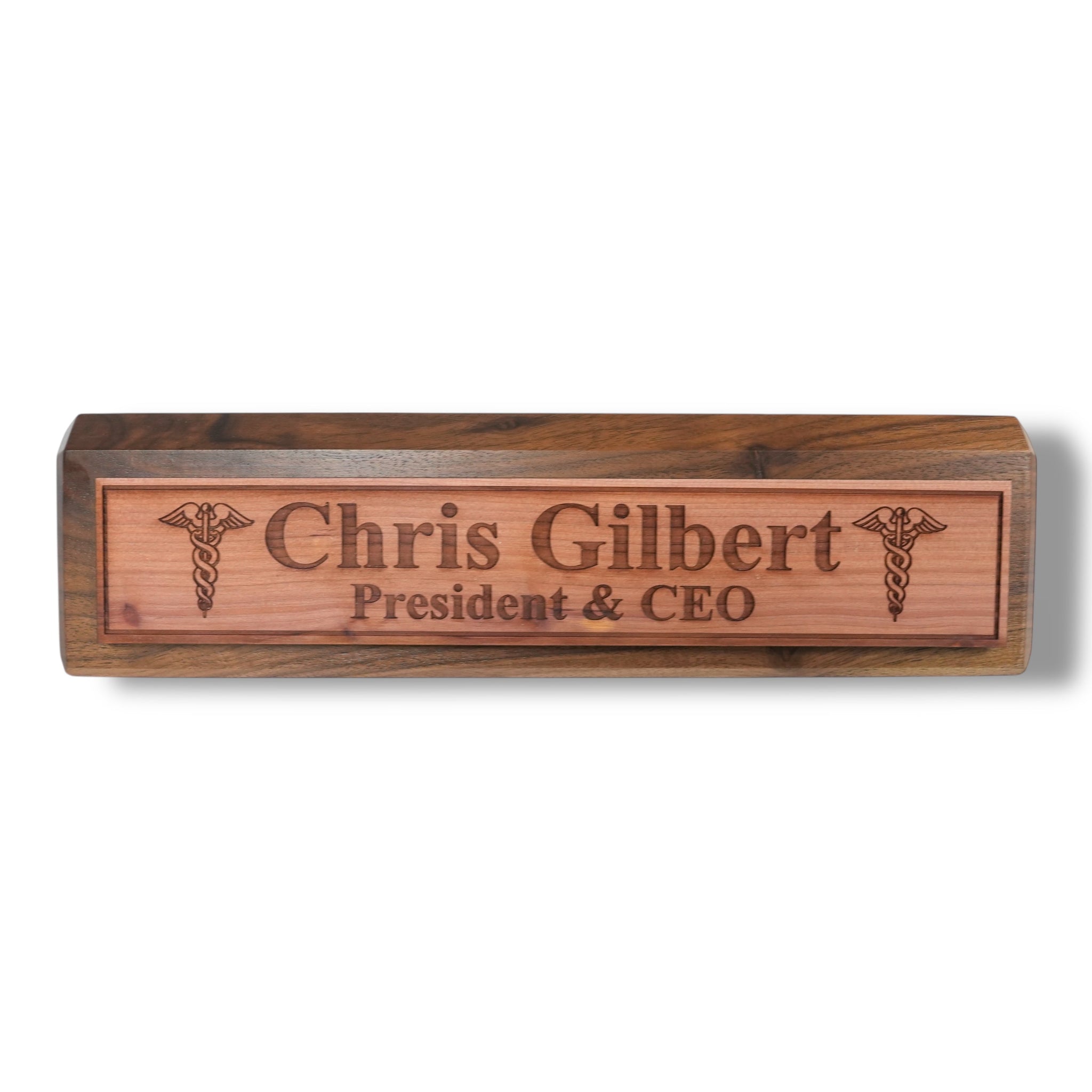 Desk Wedge Name Plate - PERSONALIZED - Pharmaceutical Caduceus Hermes - 11 Inches