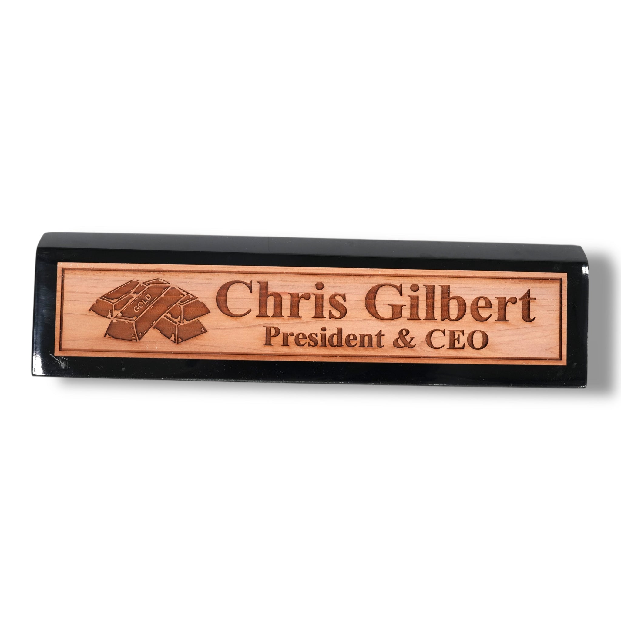 Desk Wedge Name Plate - PERSONALIZED - Gold Bars - 11 Inches