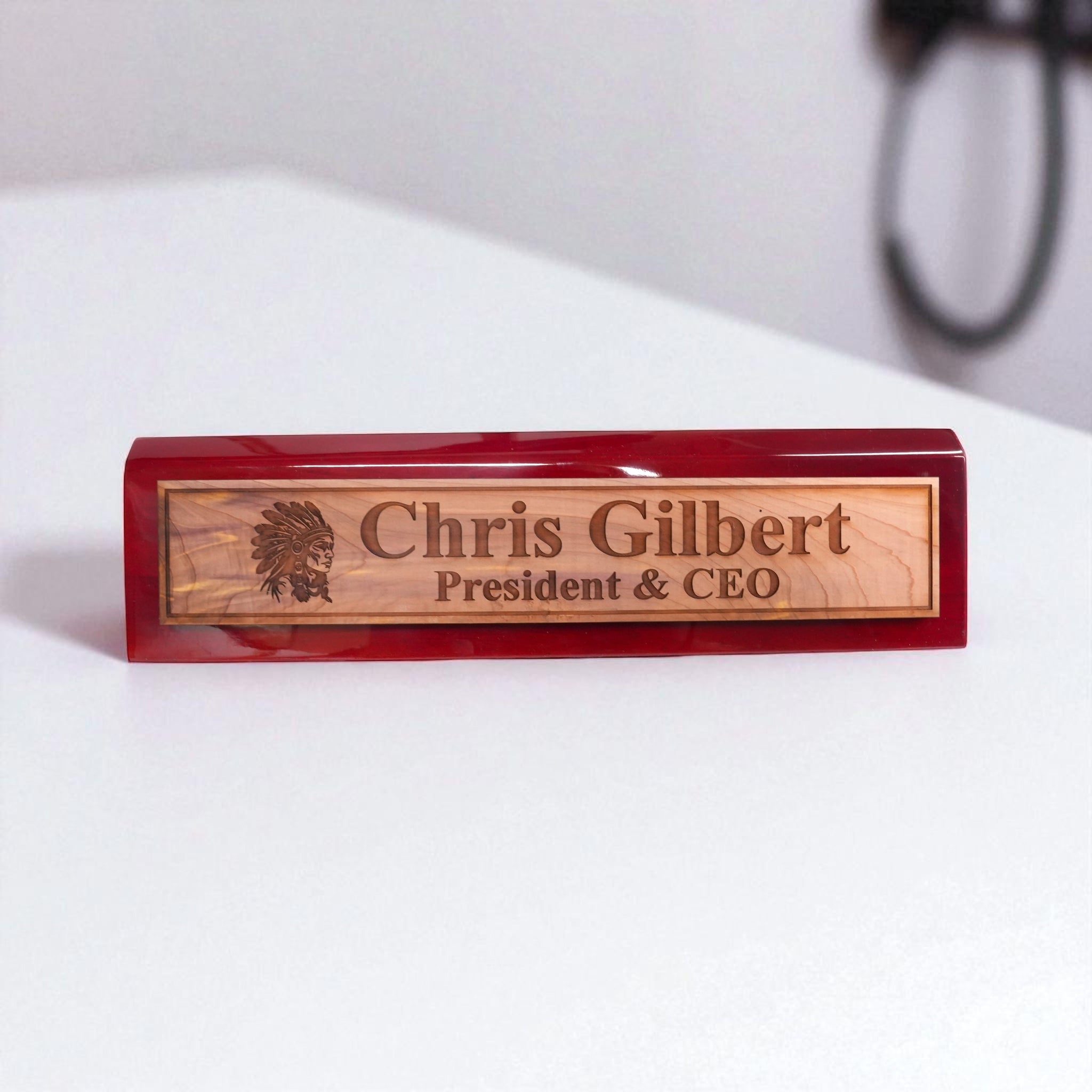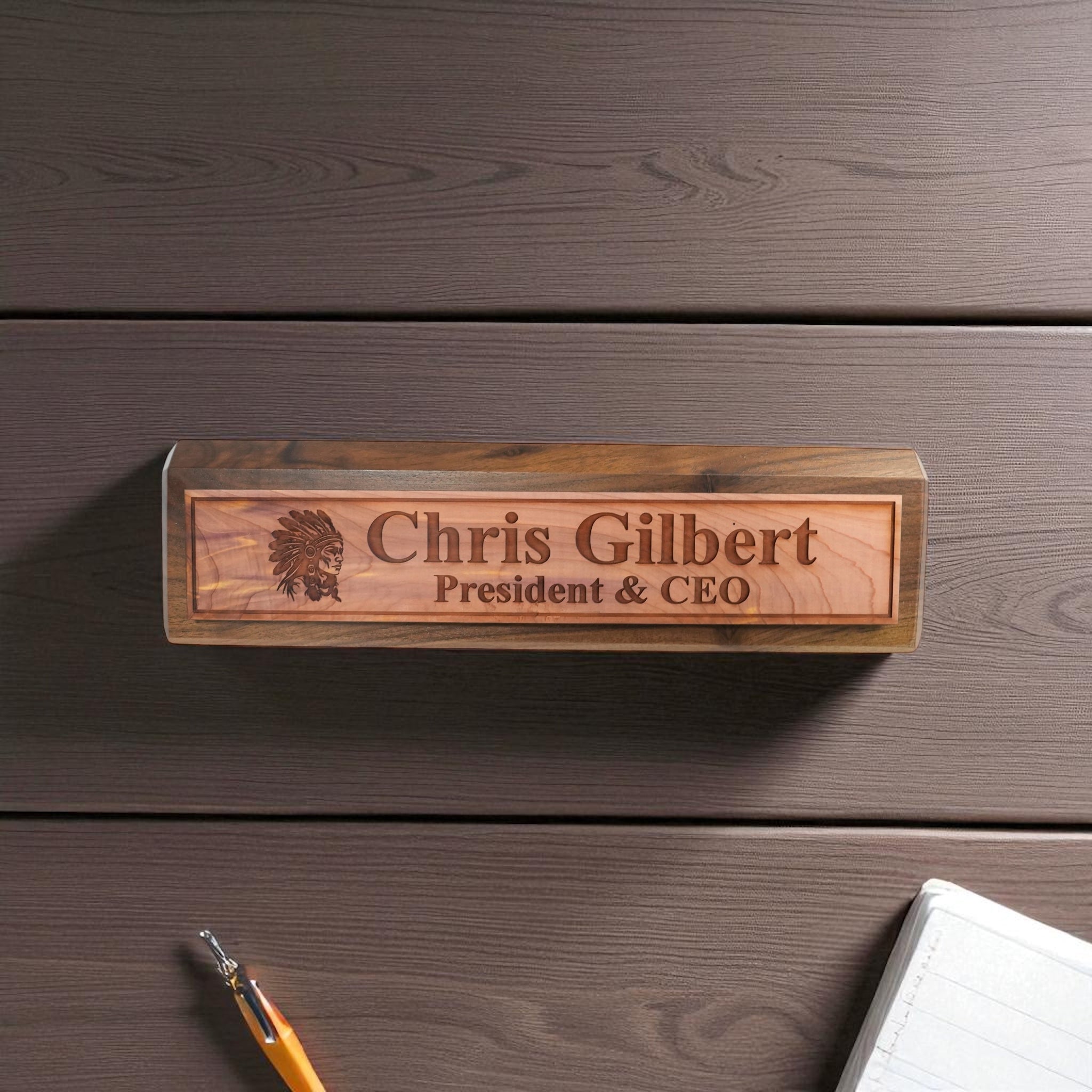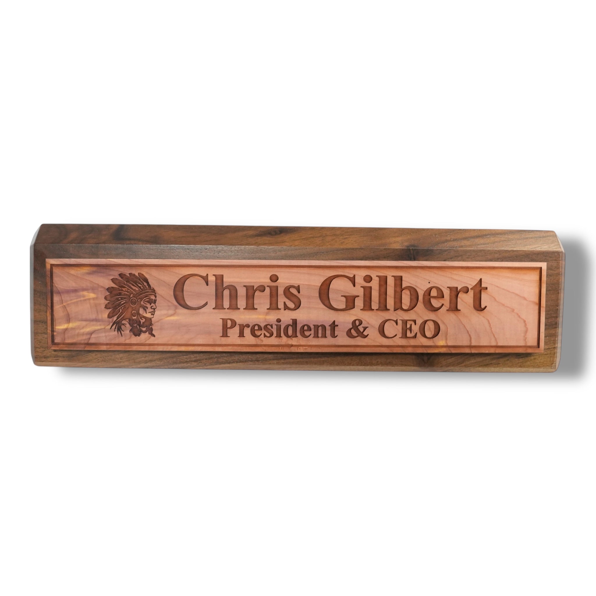 Desk Wedge Name Plate - PERSONALIZED - Indian Chief - 11 Inches
