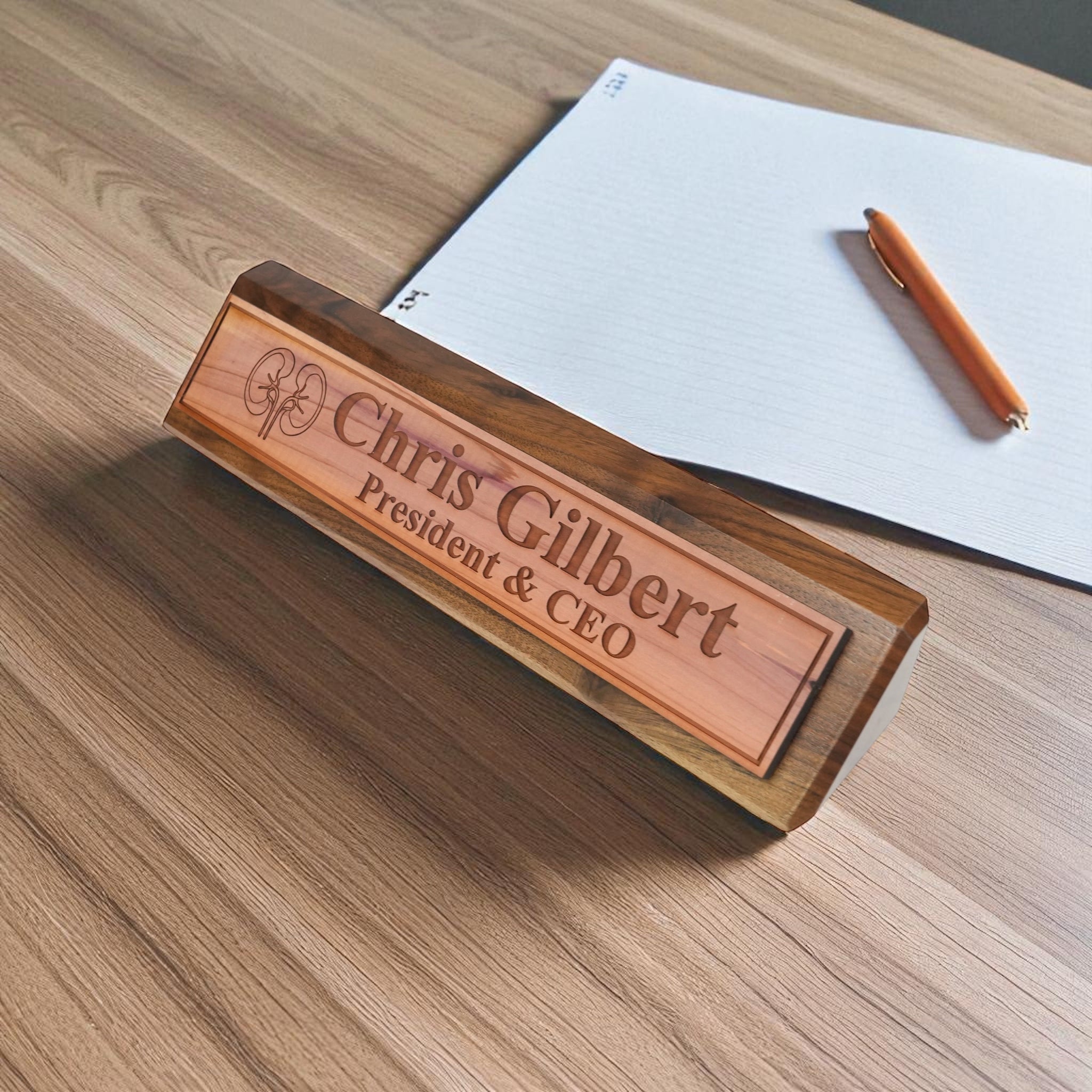 Desk Wedge Name Plate - PERSONALIZED - Kidney - 11 Inches
