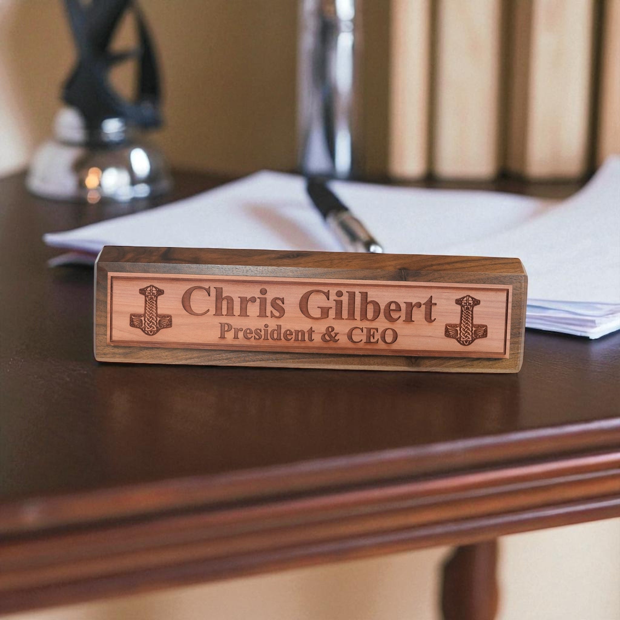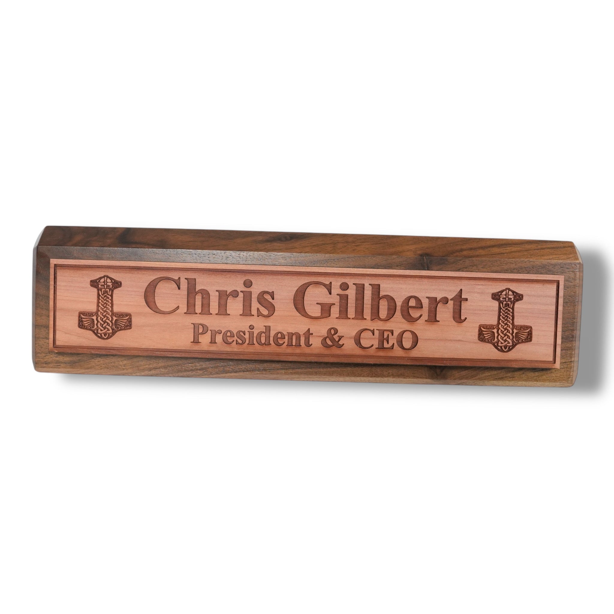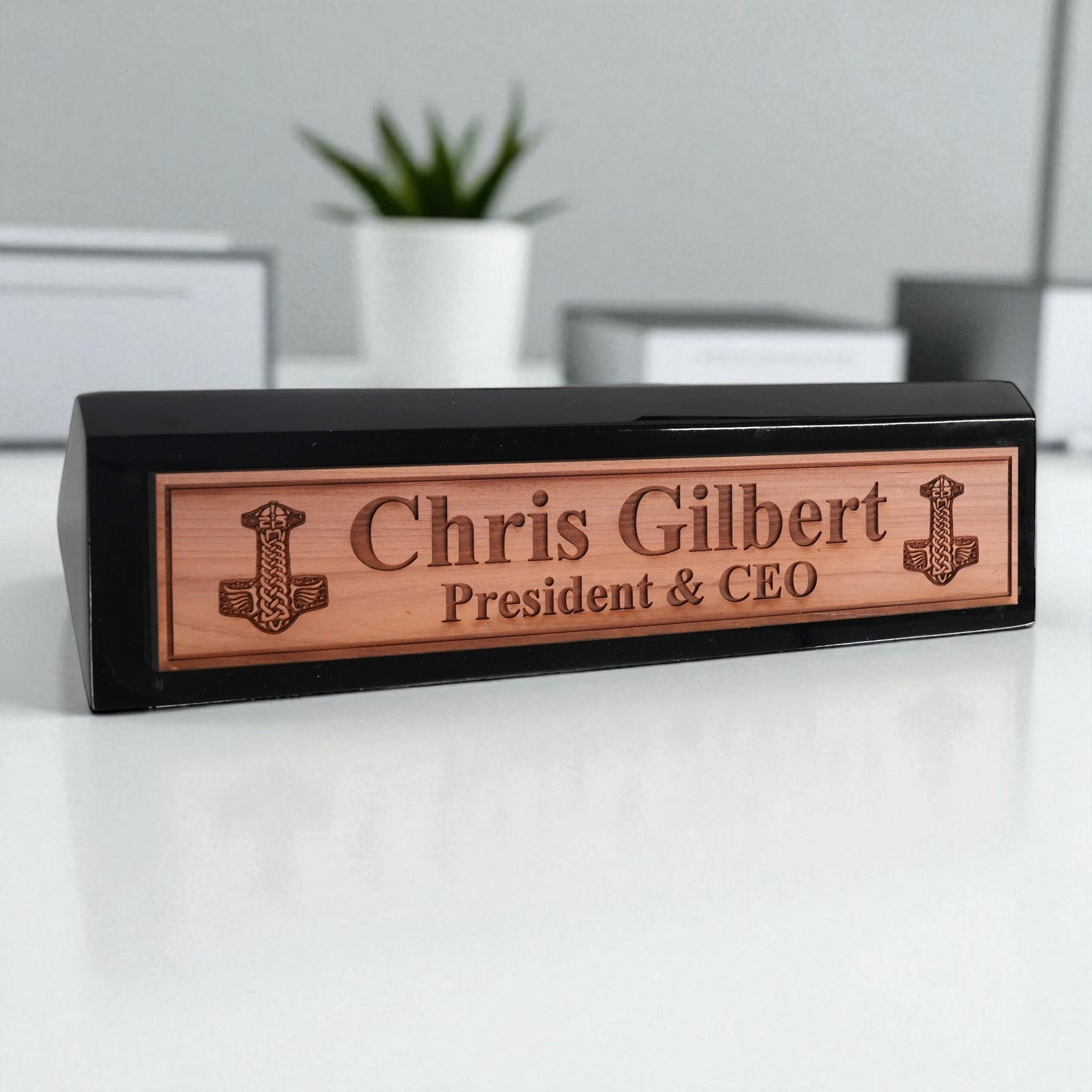 Desk Wedge Name Plate - PERSONALIZED - Mjolnir - 11 Inches