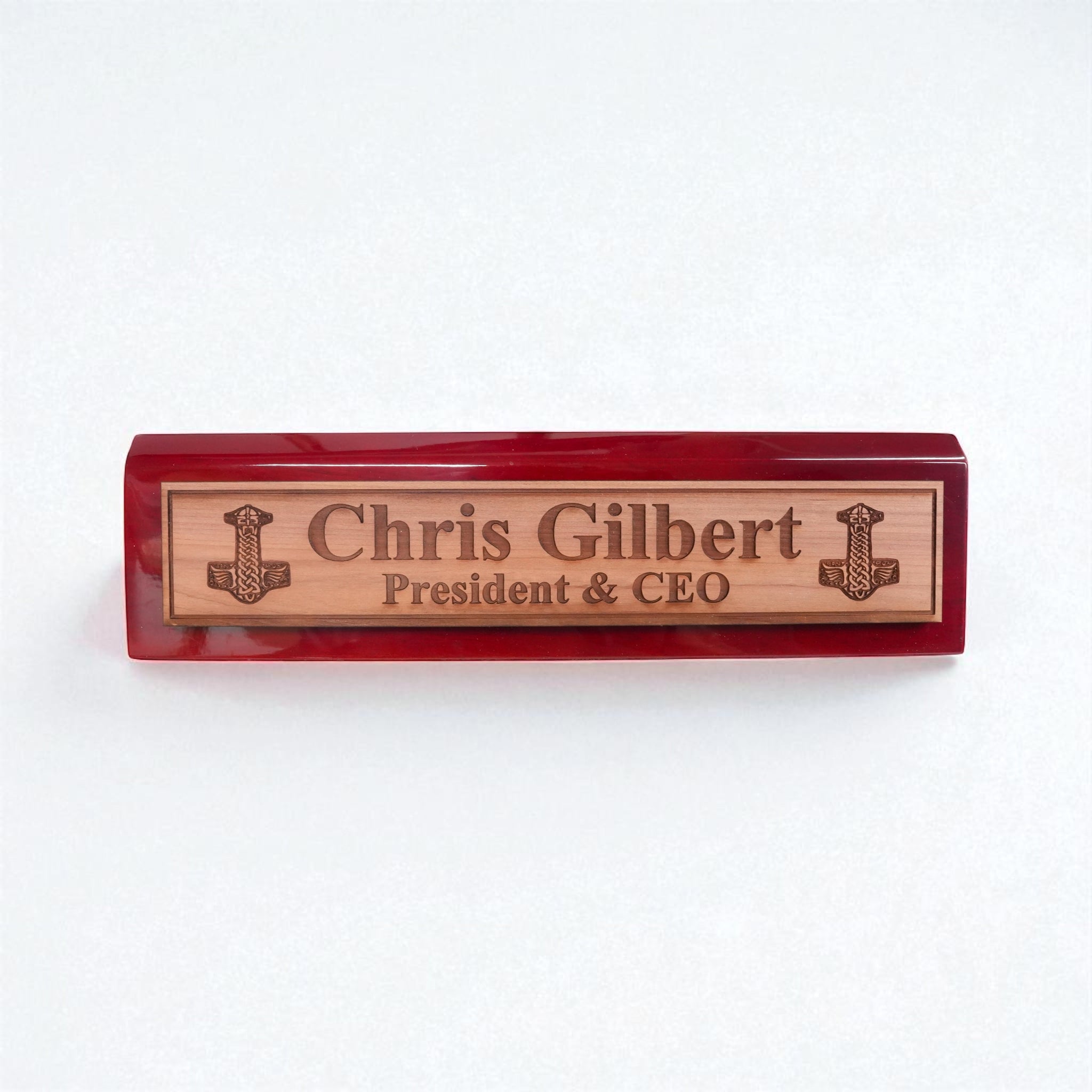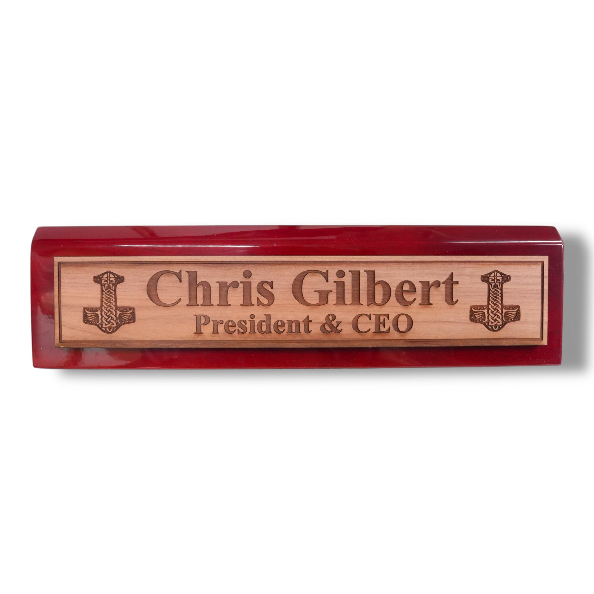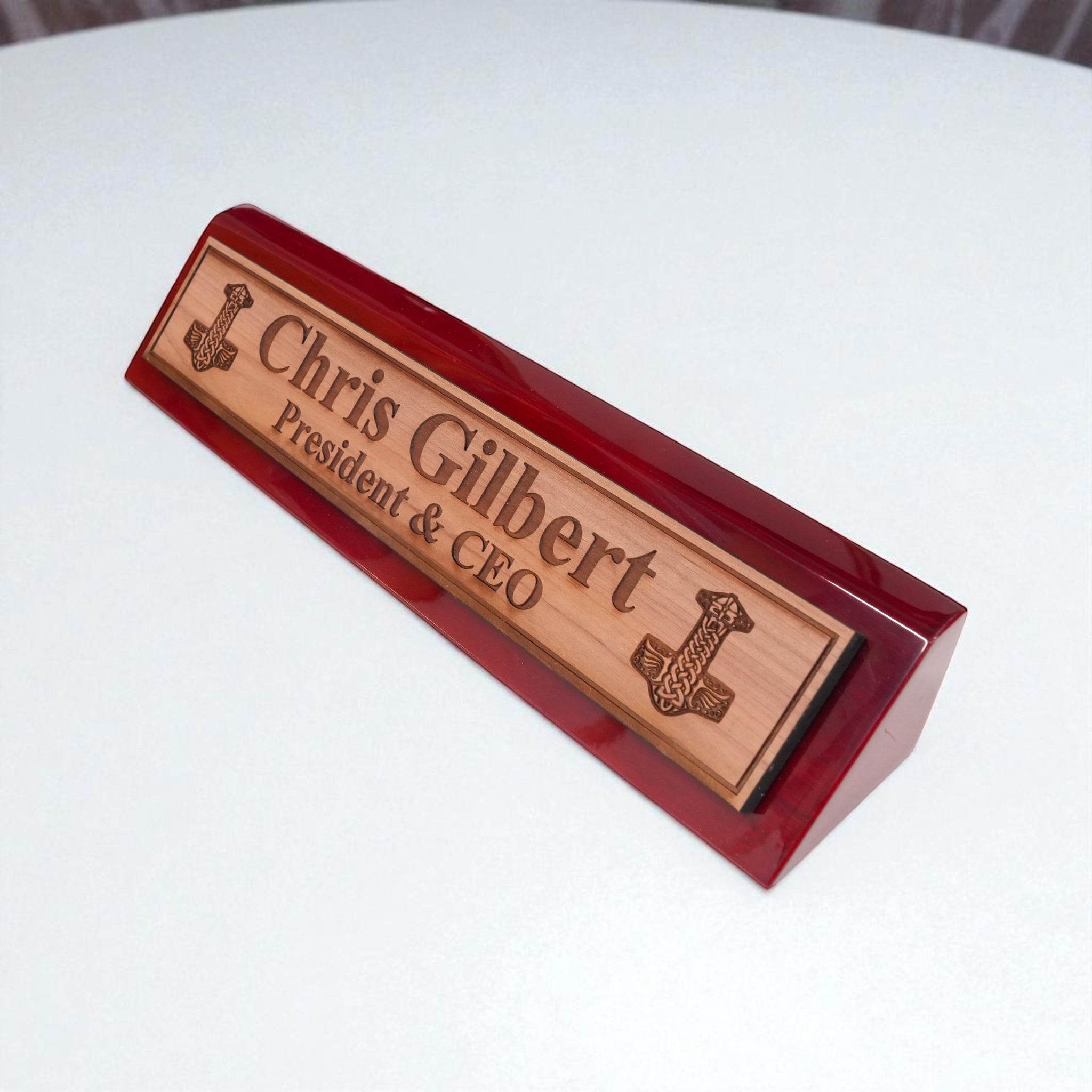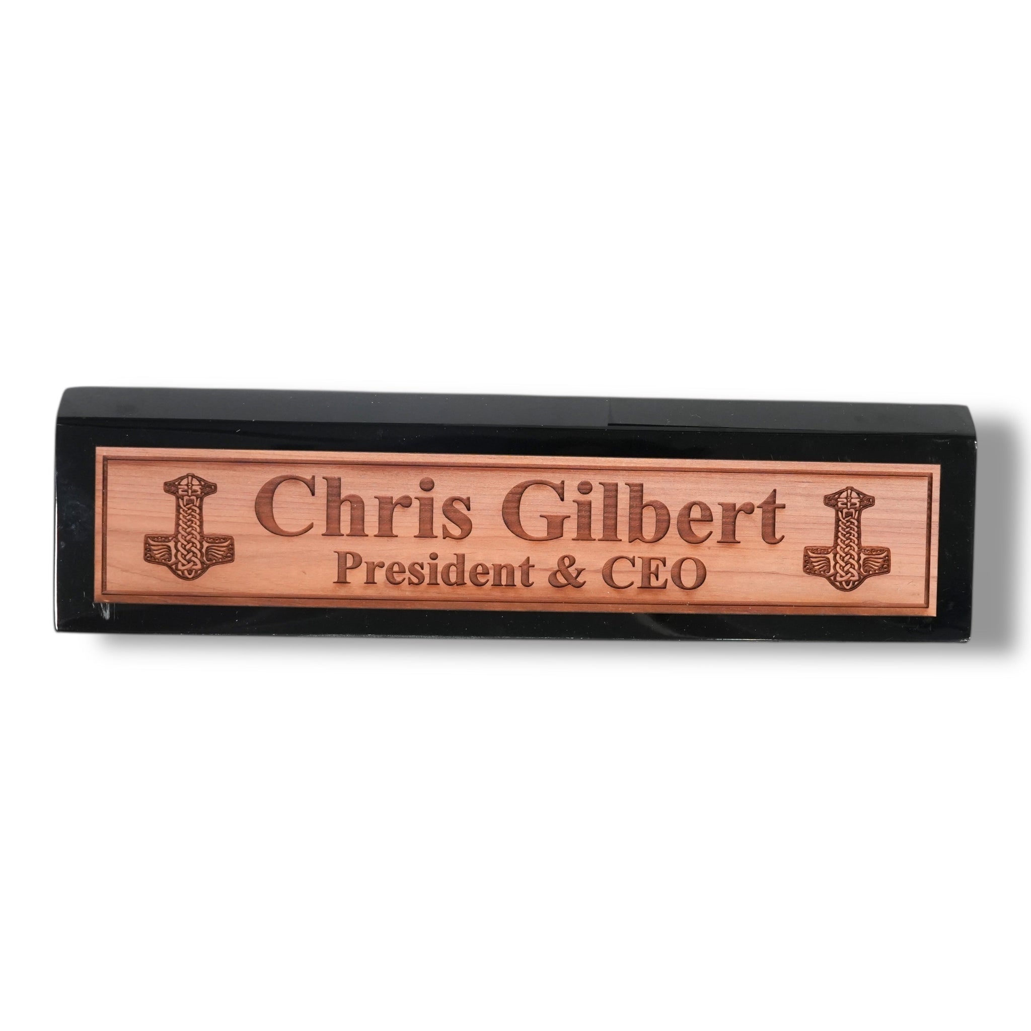 Desk Wedge Name Plate - PERSONALIZED - Mjolnir - 11 Inches