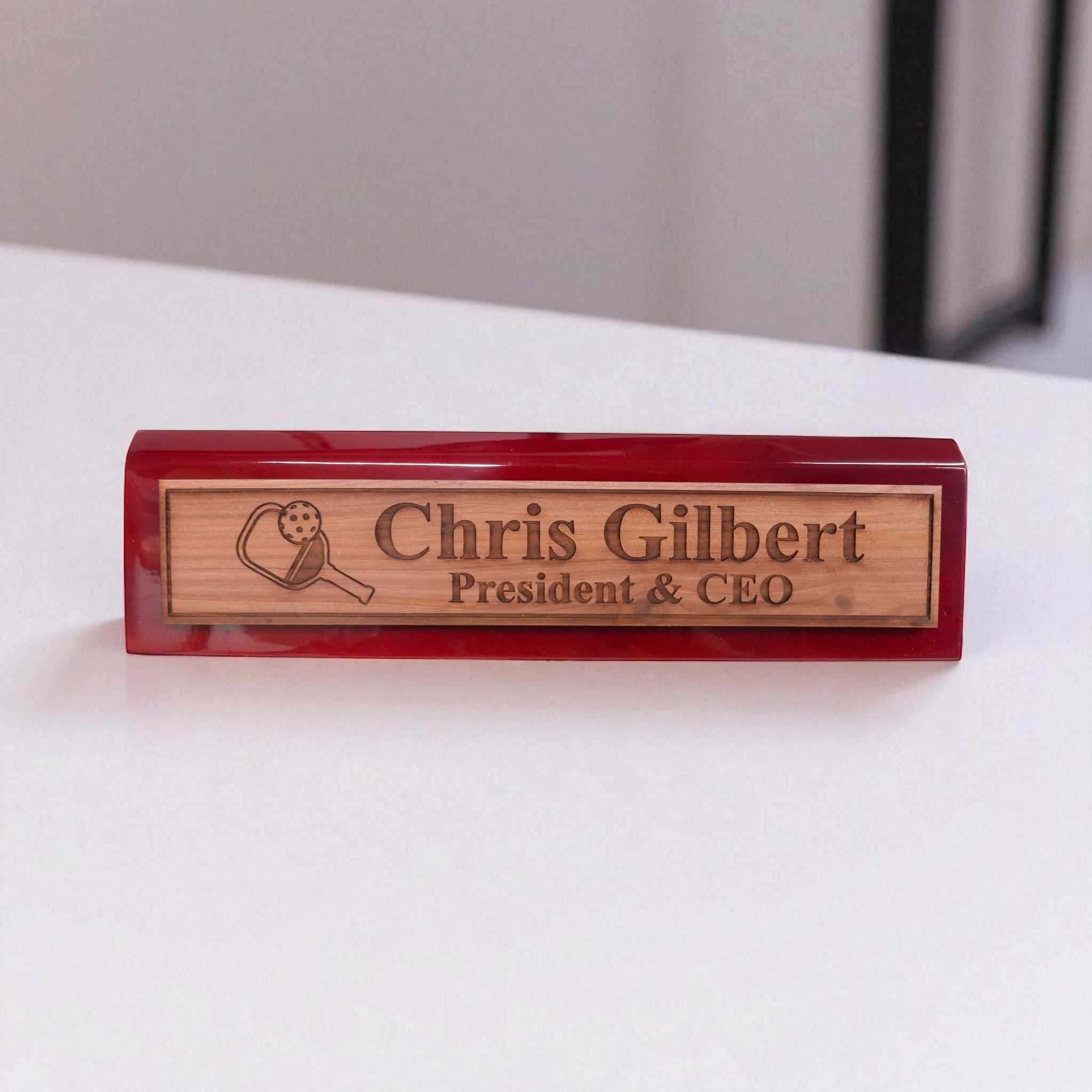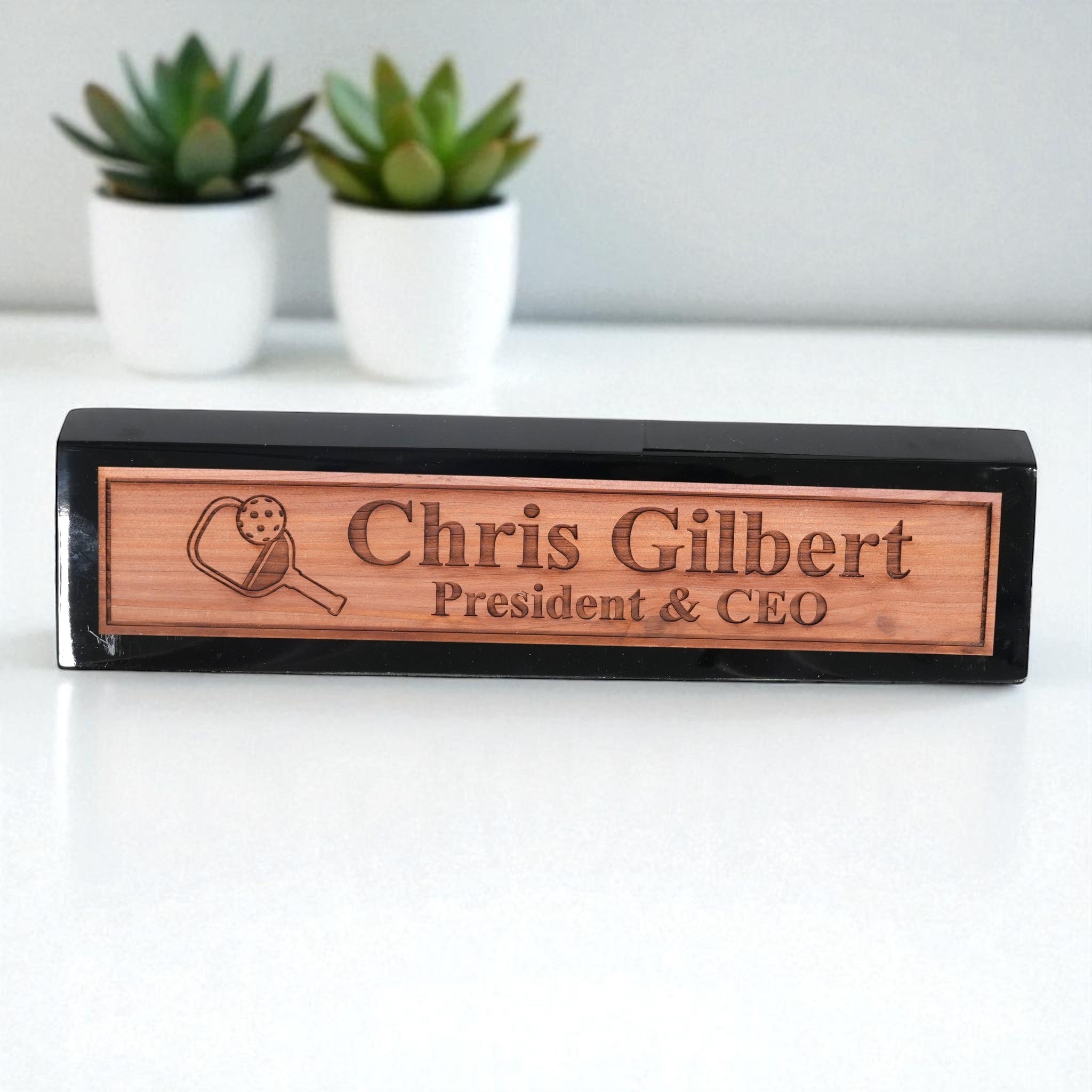 Desk Wedge Name Plate - PERSONALIZED - Pickleball - 11 Inches