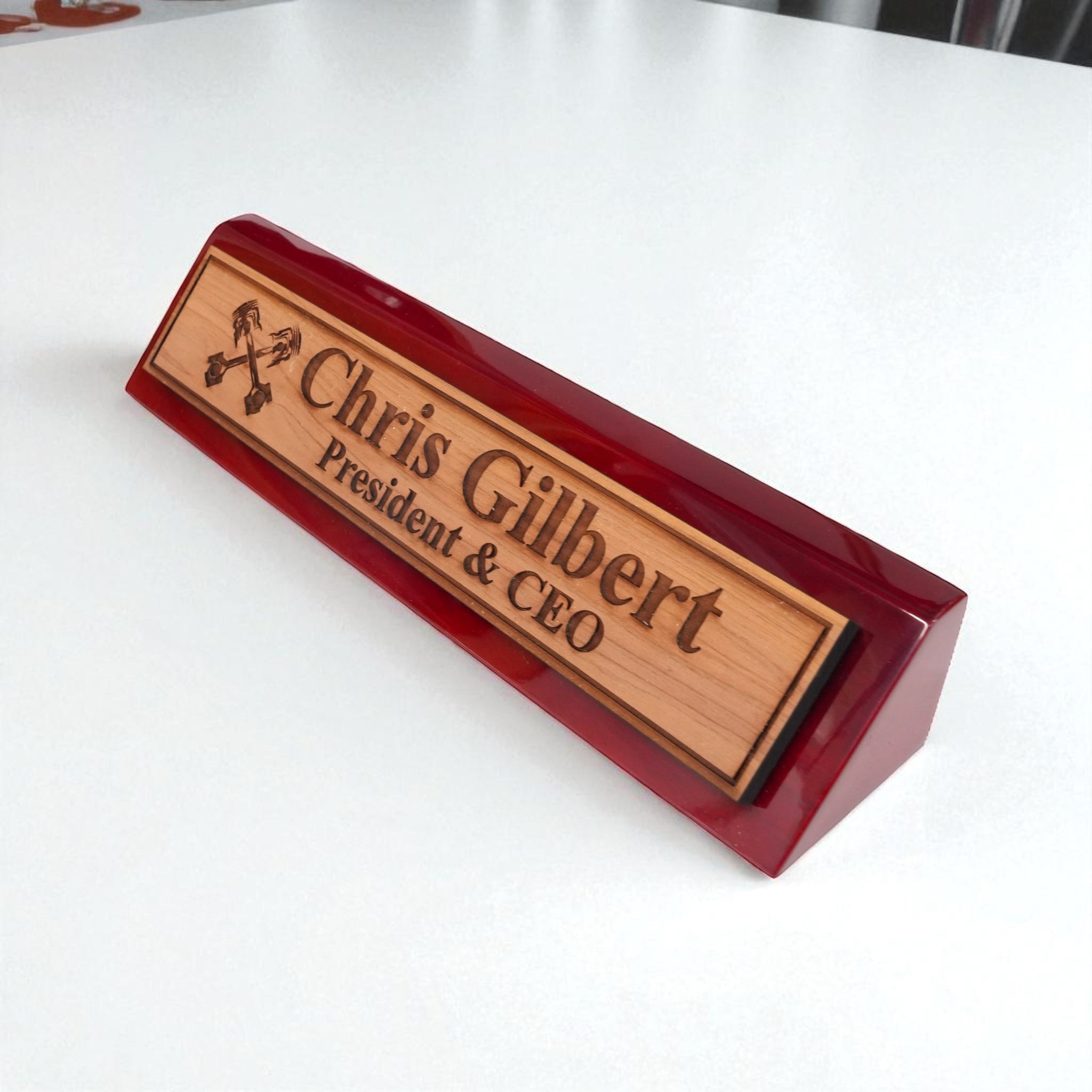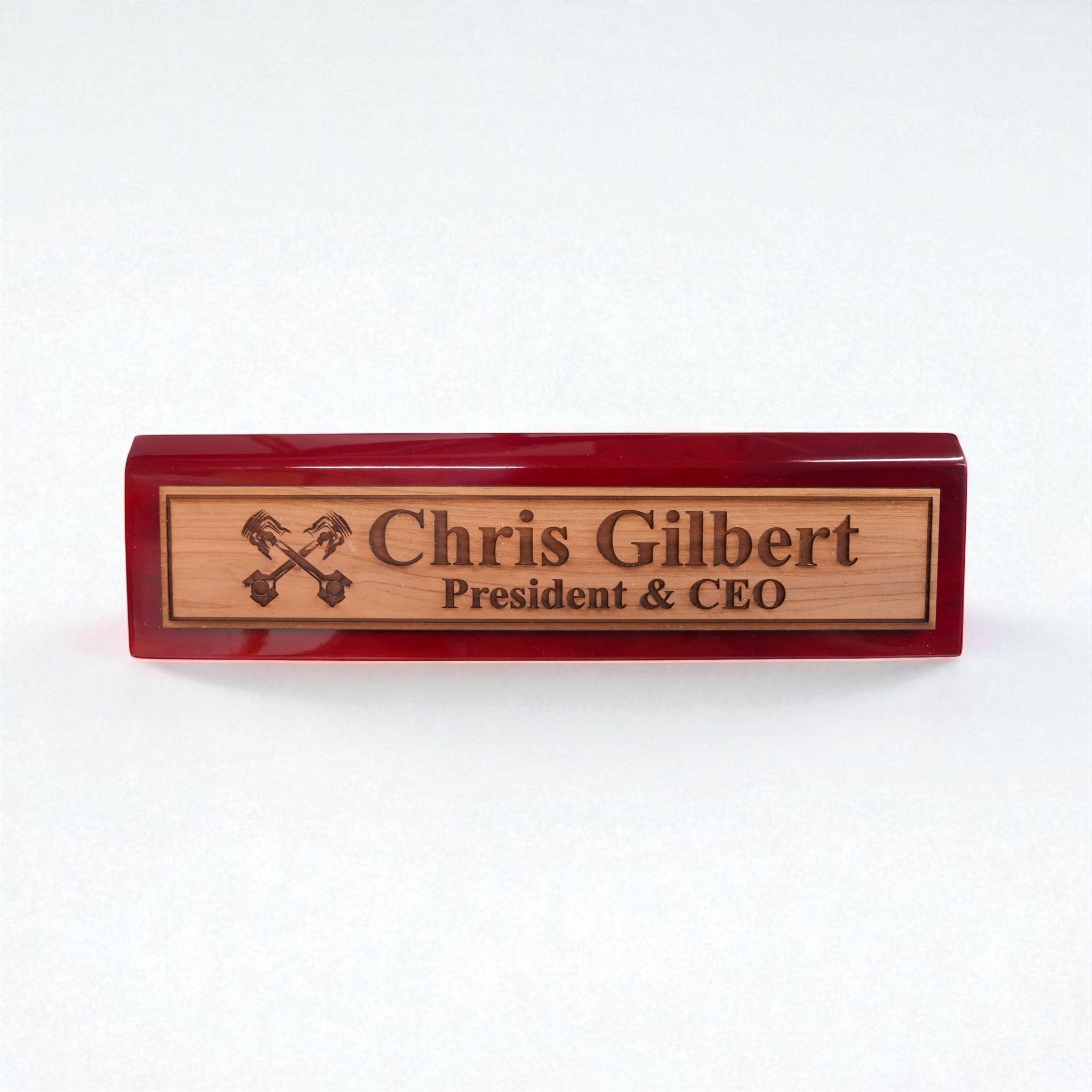 Desk Wedge Name Plate - PERSONALIZED - PIstons - 11 Inches