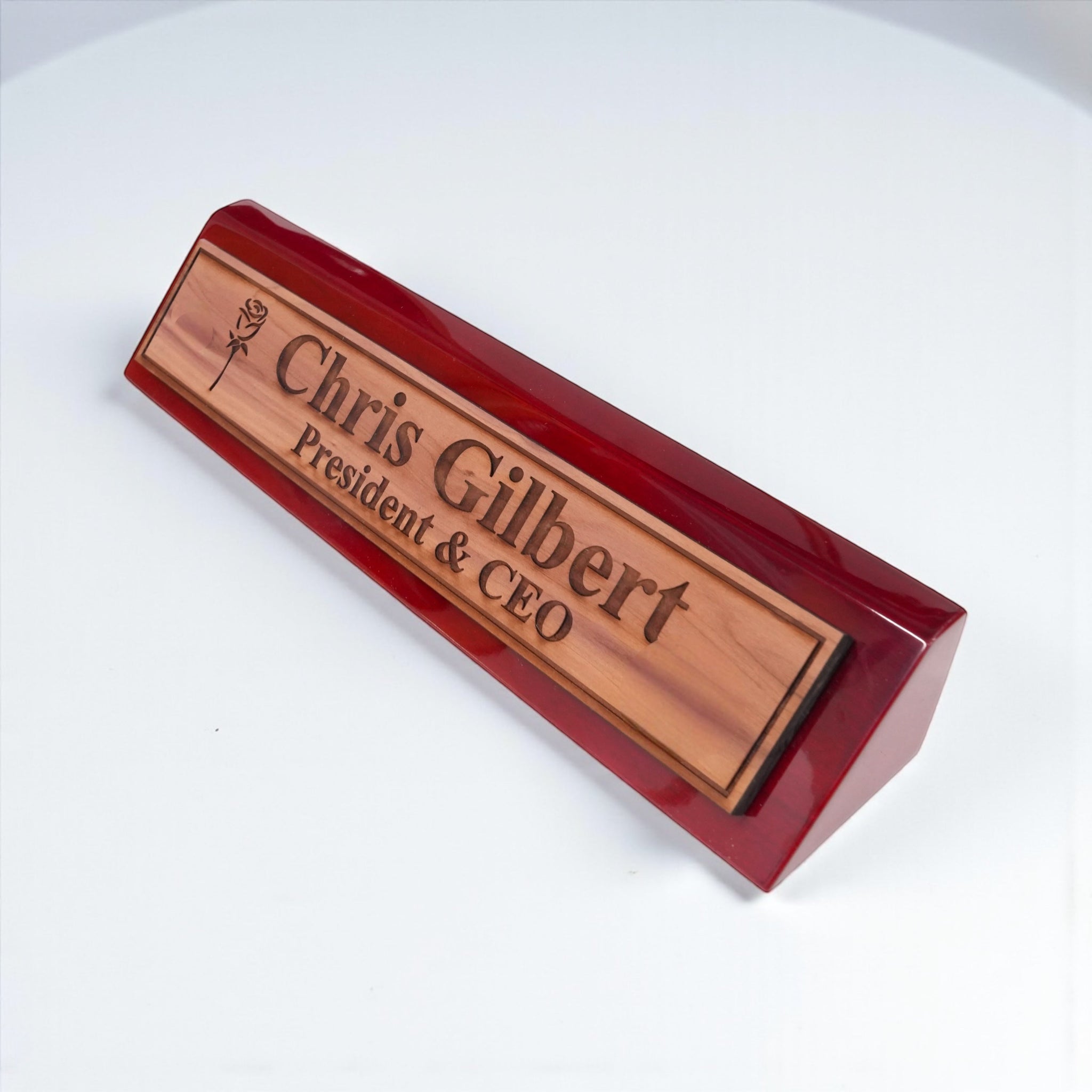 Desk Wedge Name Plate - PERSONALIZED - Rose - 11 Inches