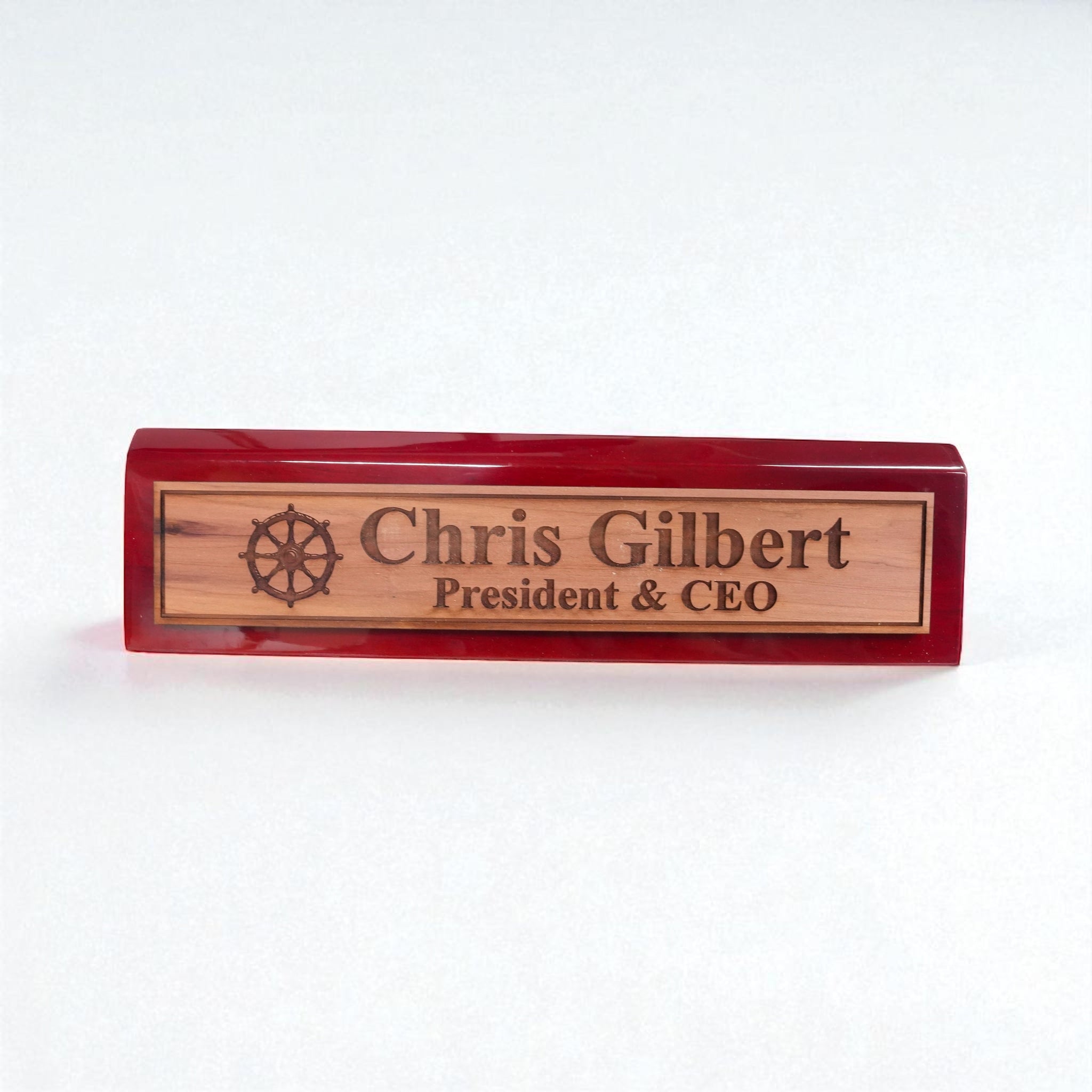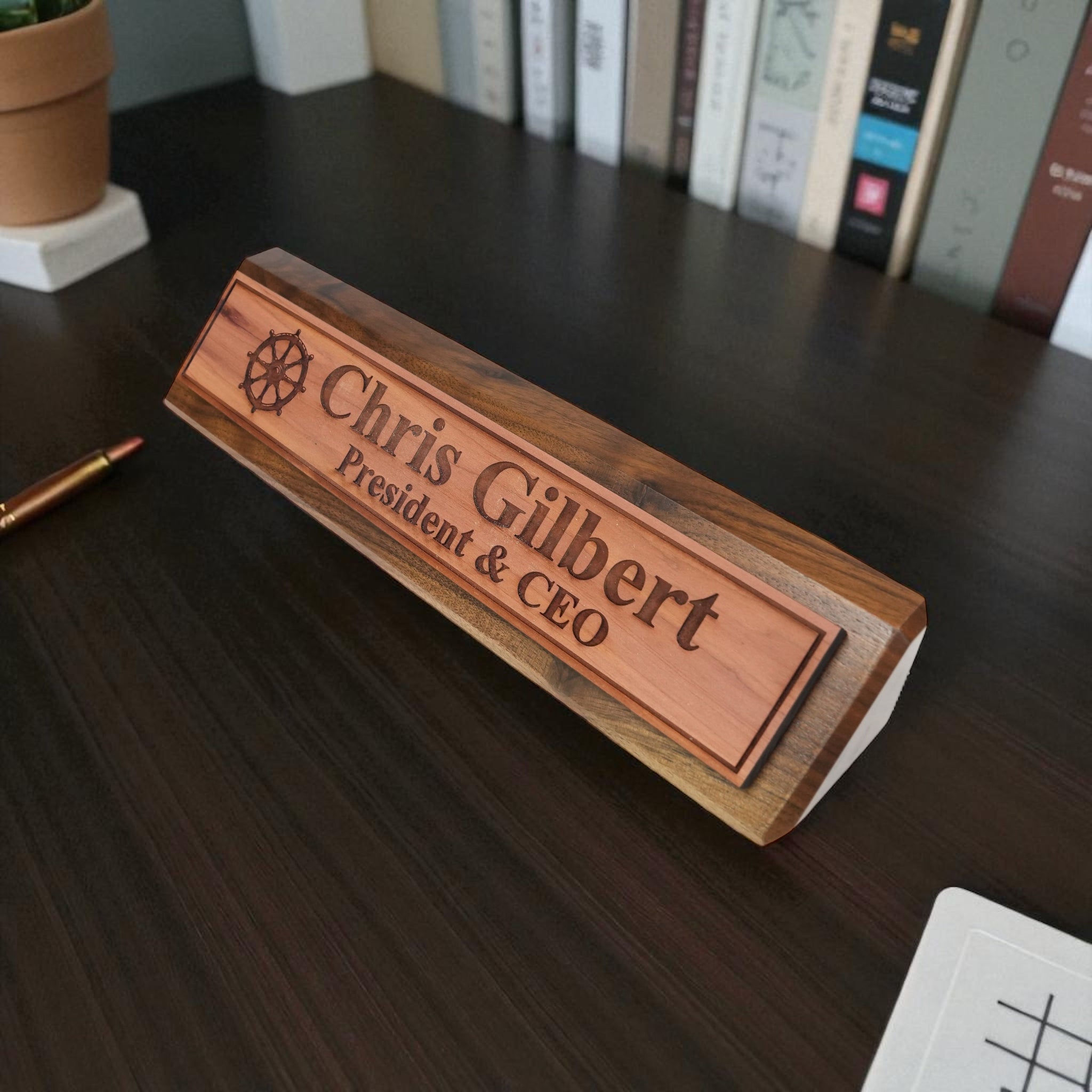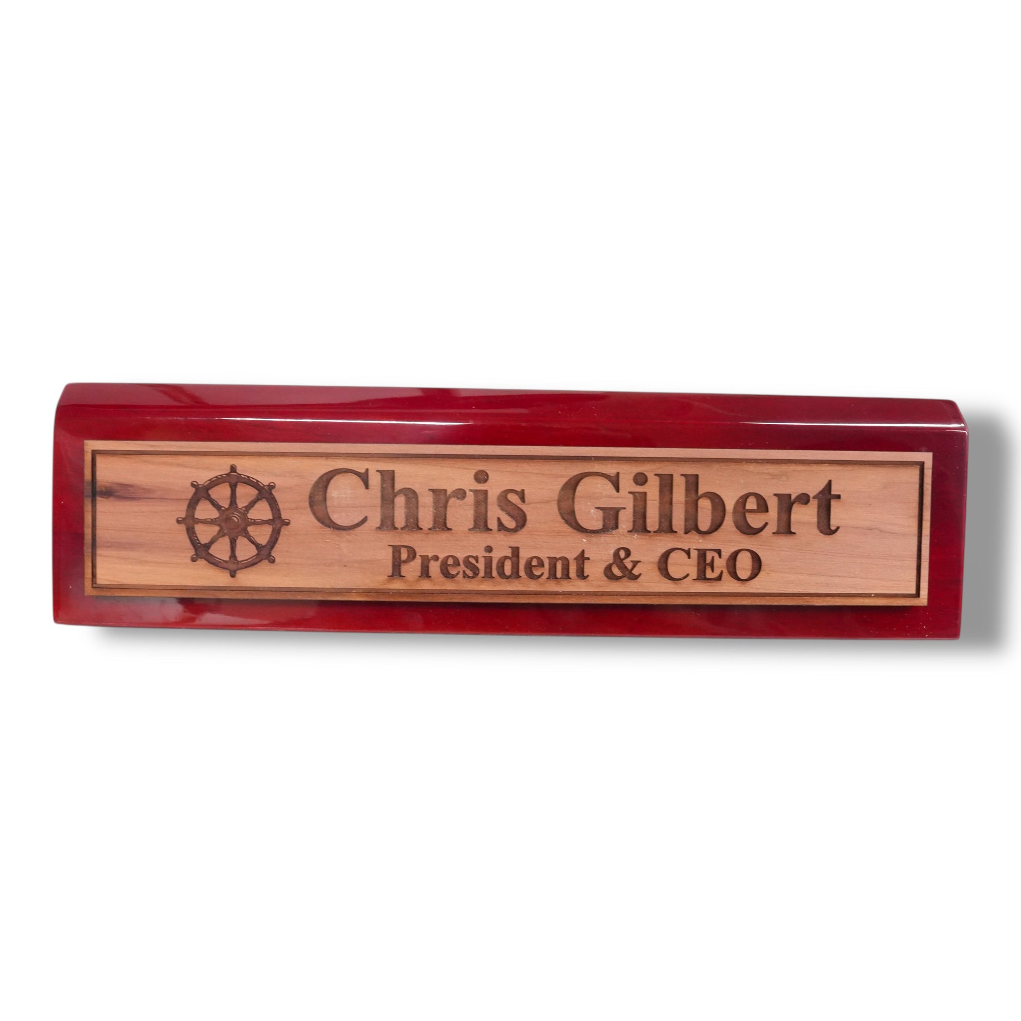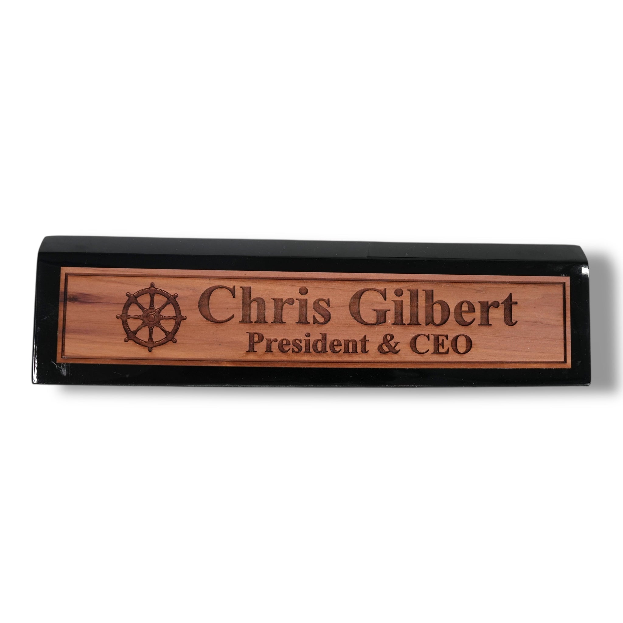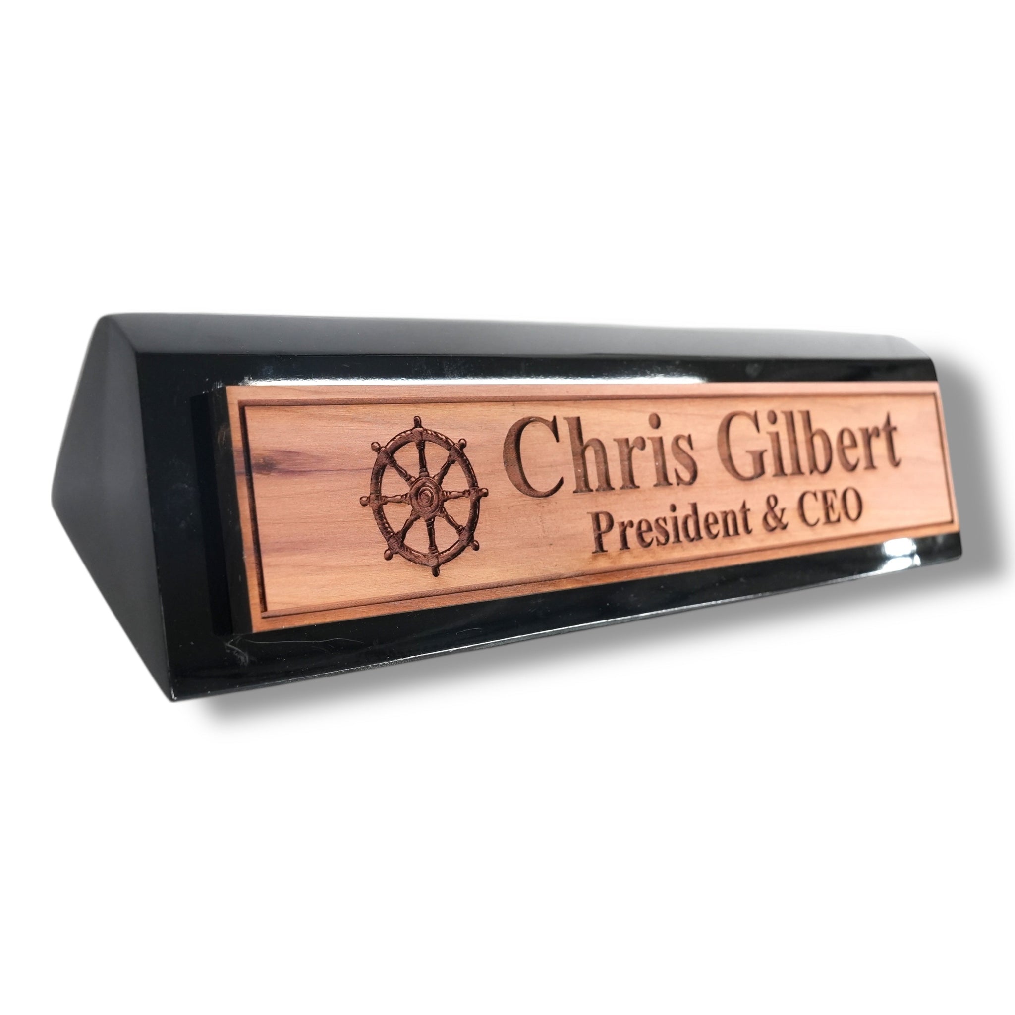 Desk Wedge Name Plate - PERSONALIZED - Ships Wheel - 11 Inches