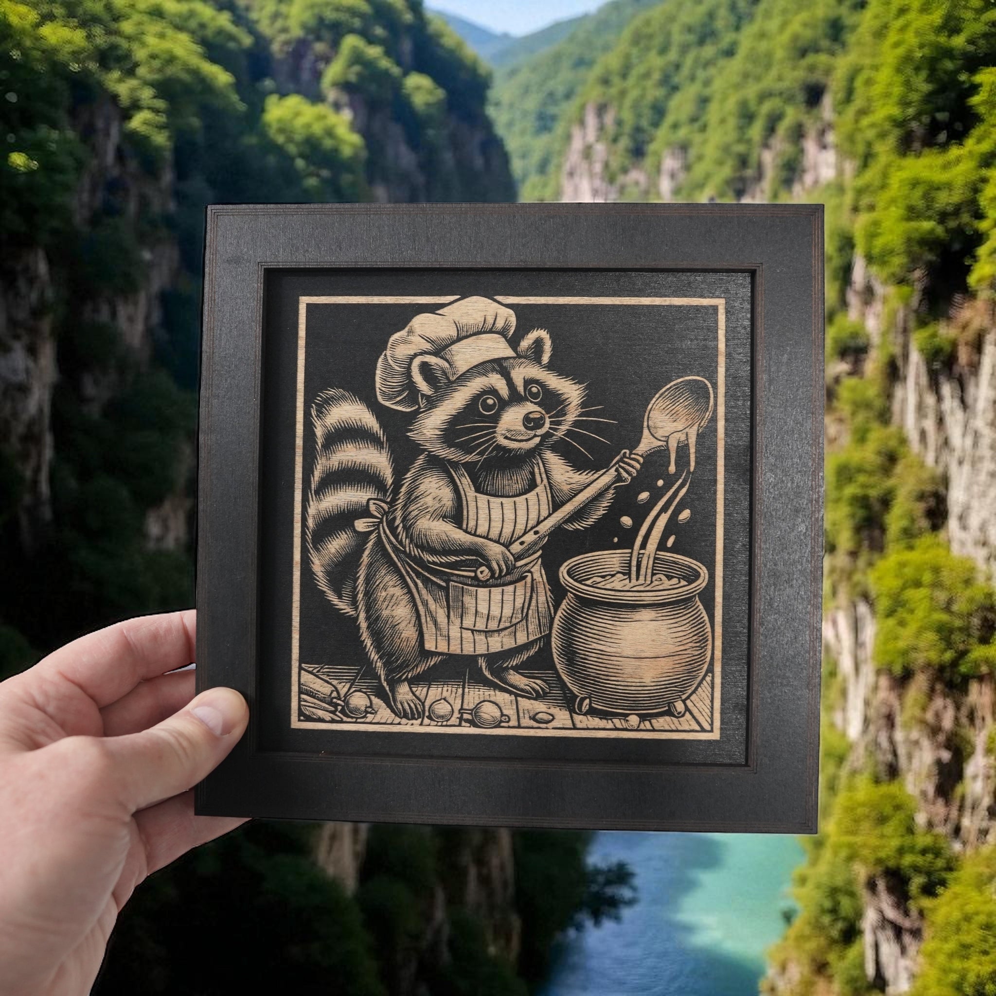 Framed Art - CUSTOM - Raccoon Cooking