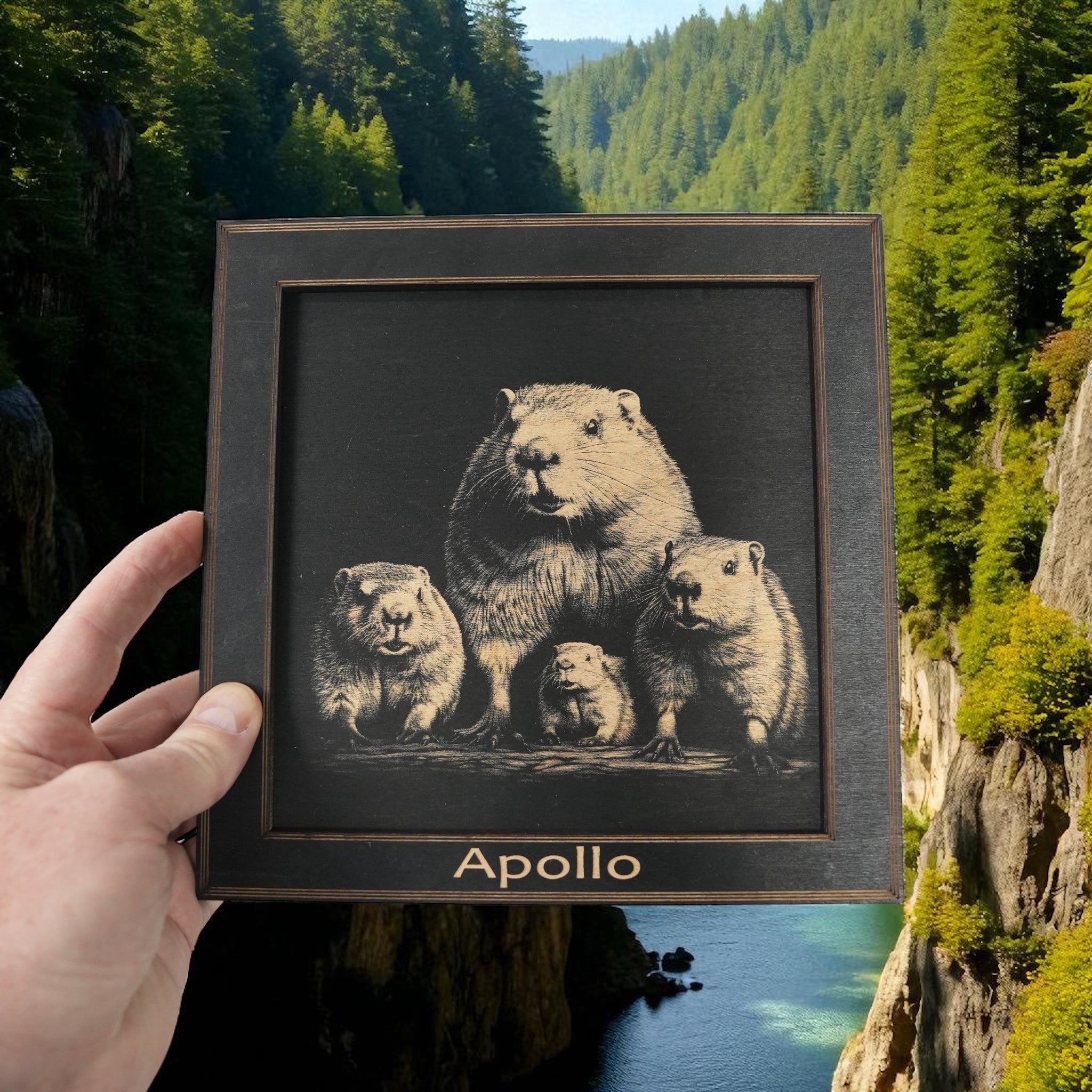 Framed Art - PERSONALIZED - CUSTOM - Beaver Family