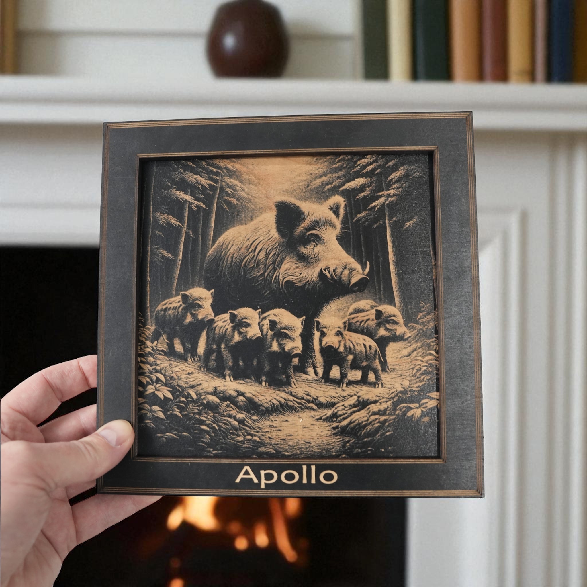 Framed Art - PERSONALIZED - CUSTOM - Wild Boar Family