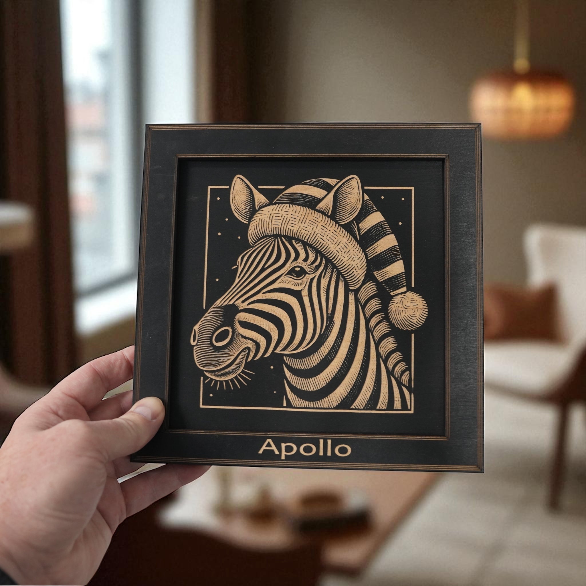 Framed Art - PERSONALIZED - CUSTOM - Zebra with Santa Hat