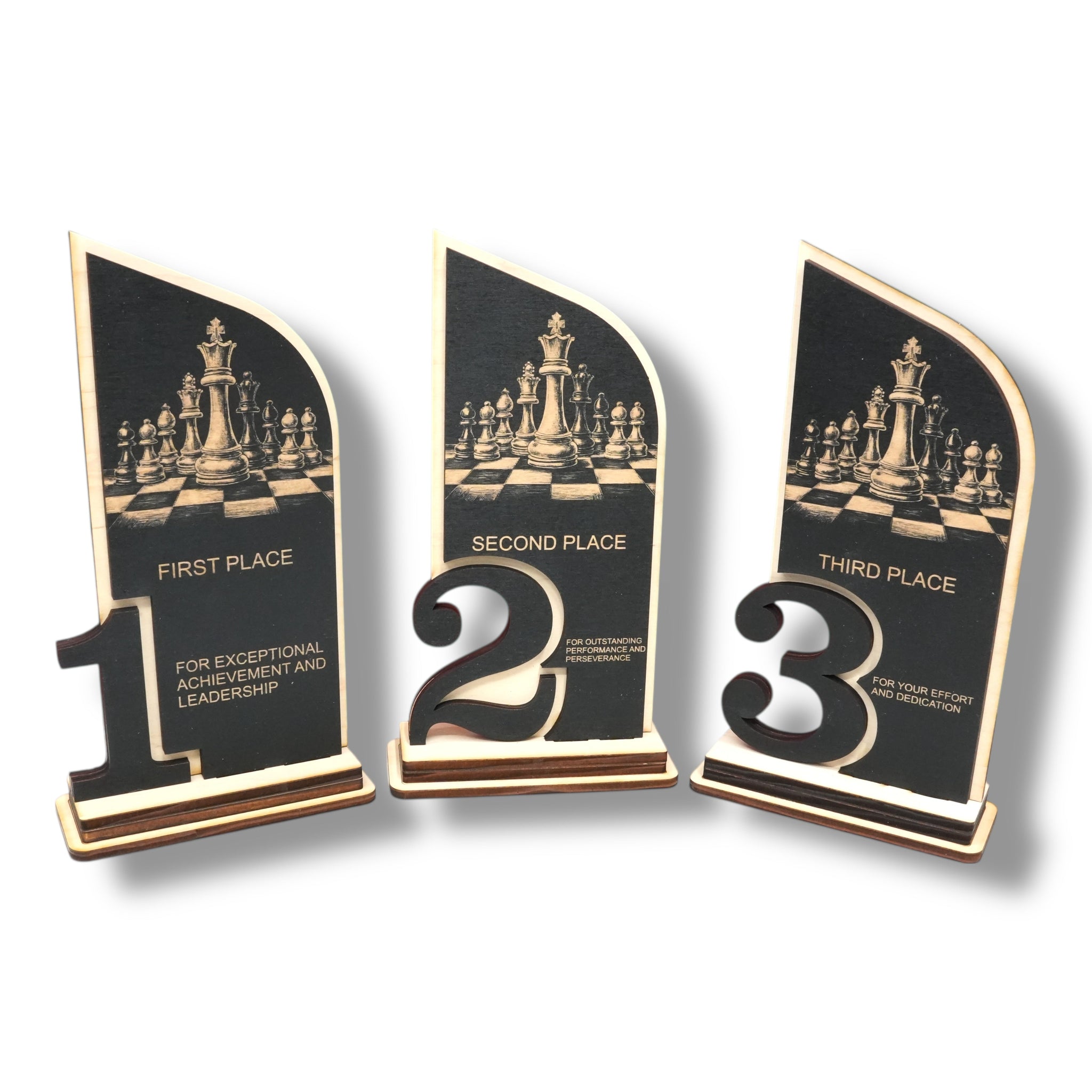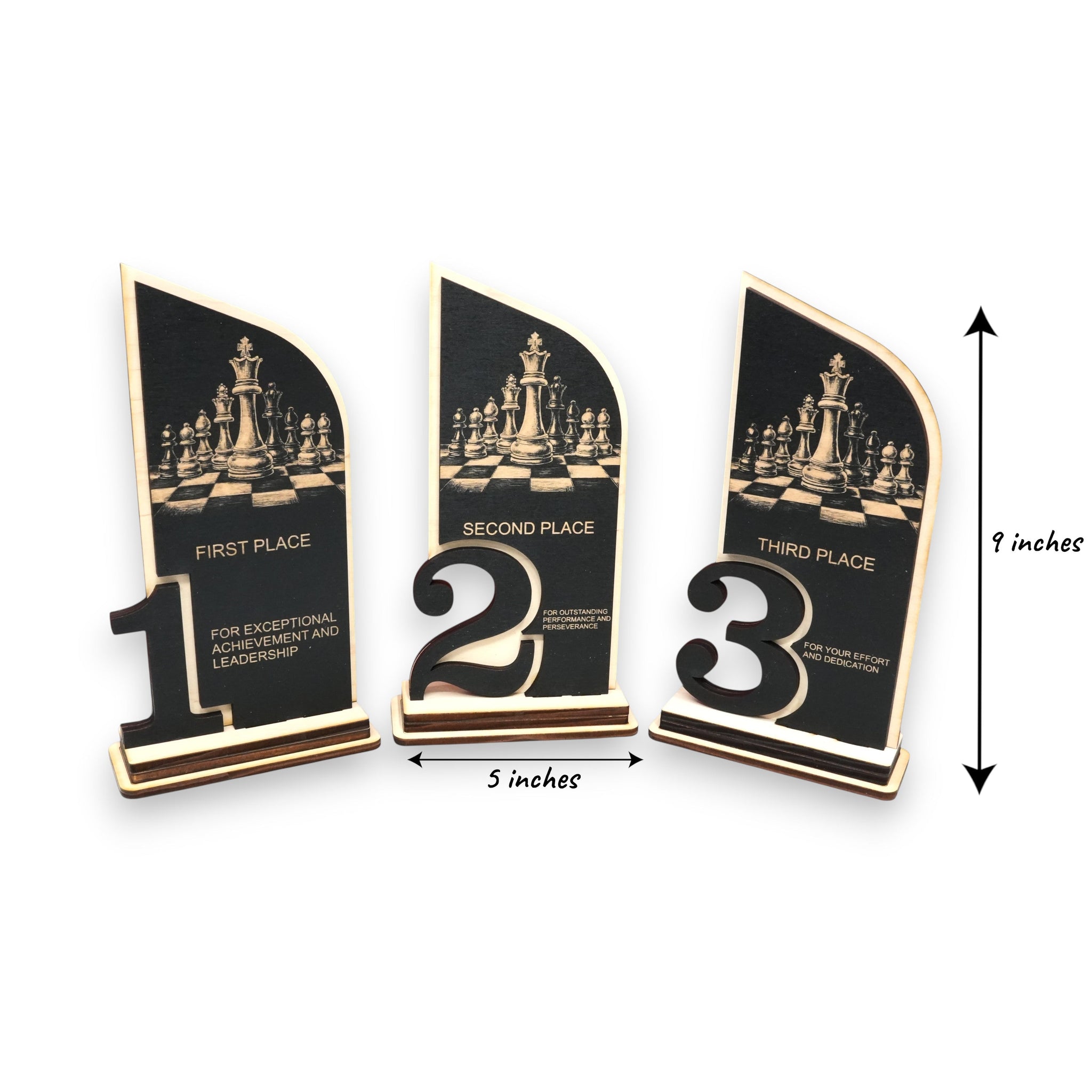 Trophy Award - CUSTOM - Chess - 1st 2nd 3rd Place - 9x5 Inches