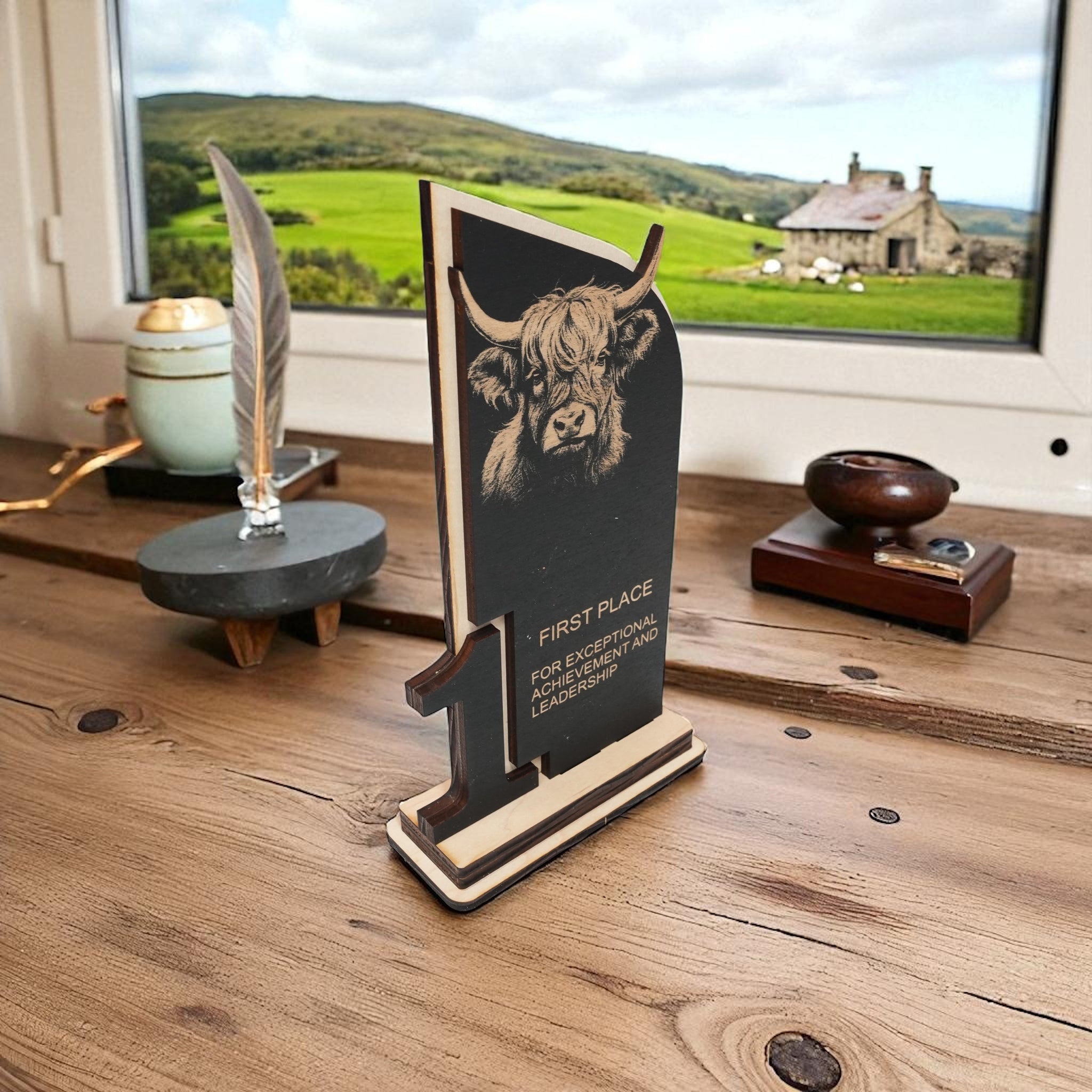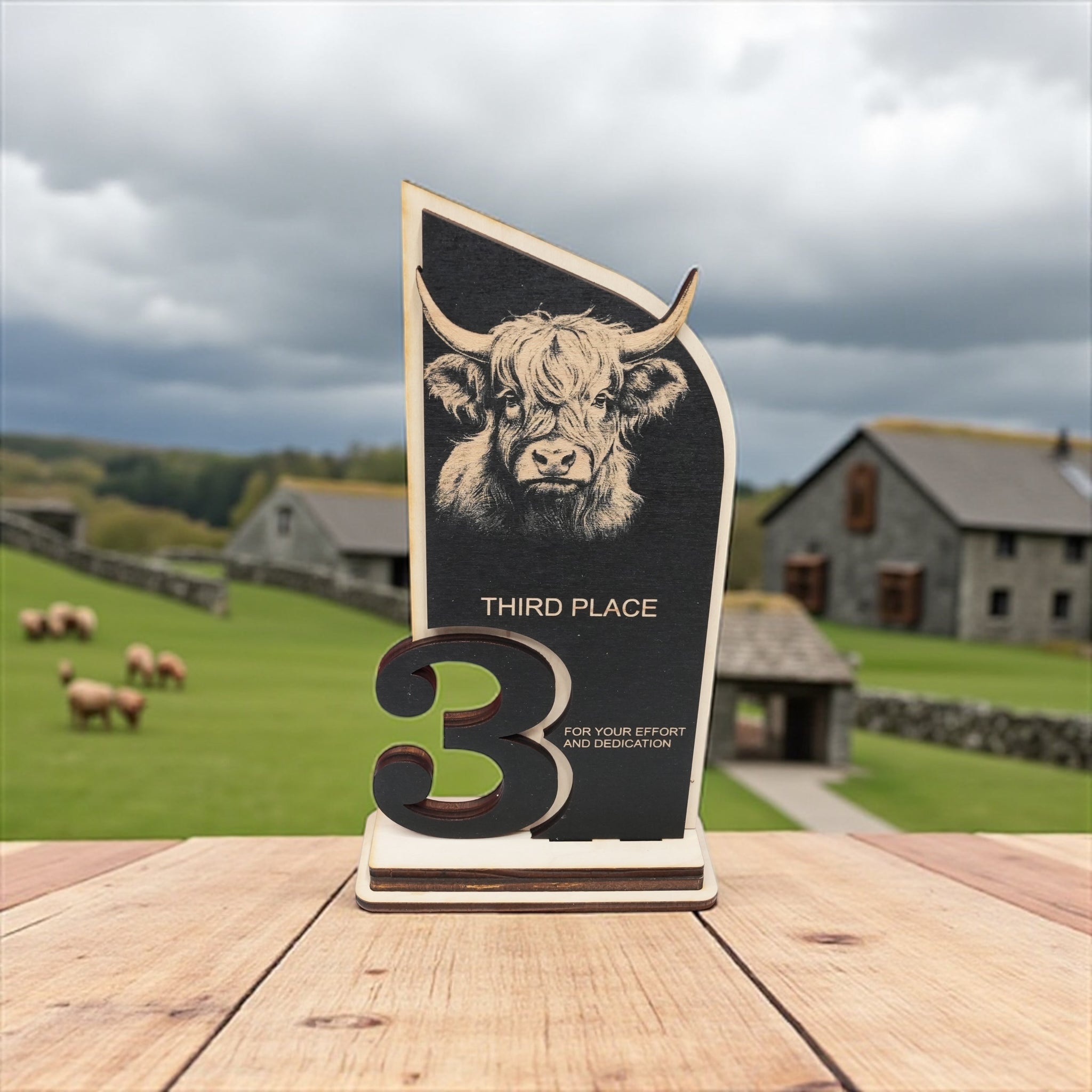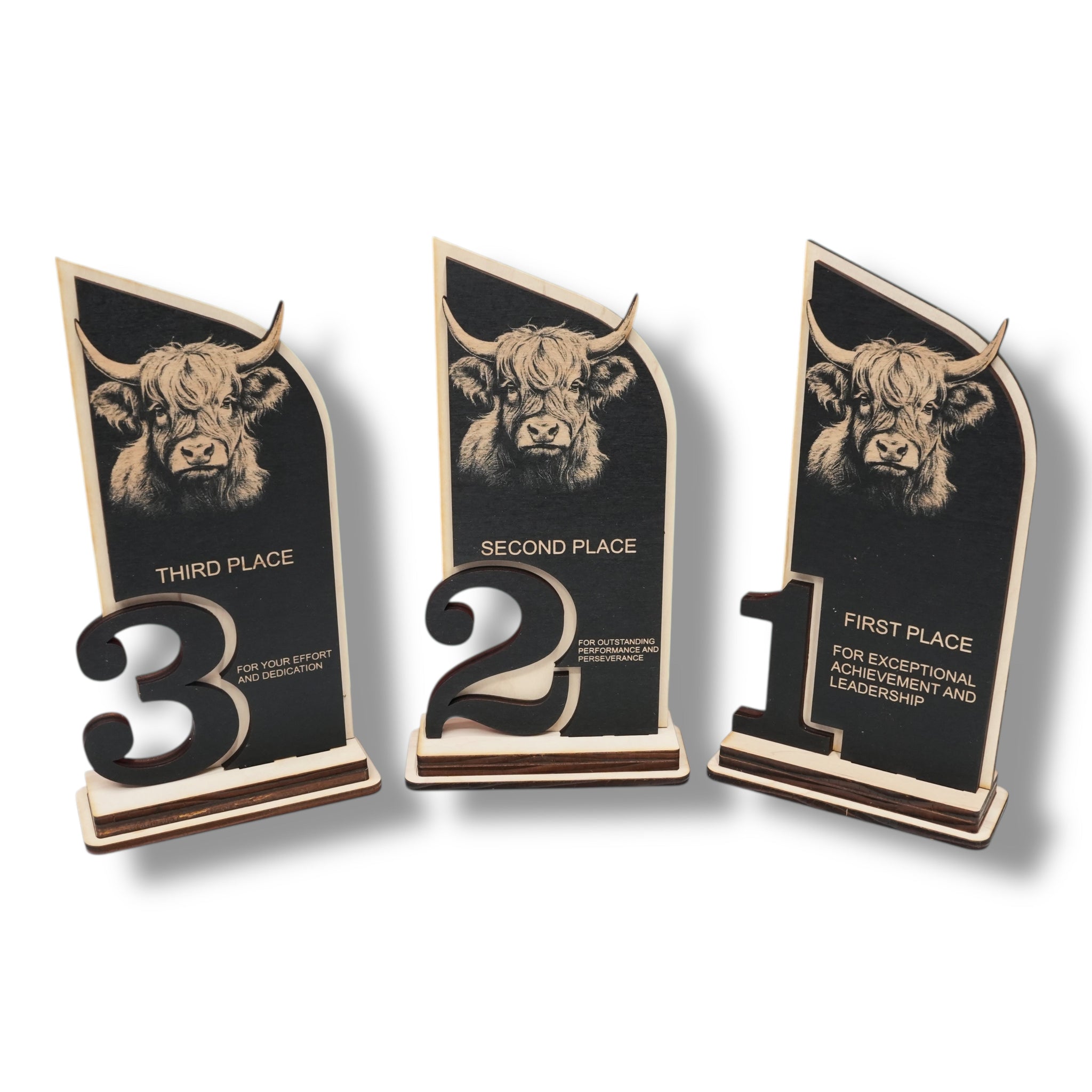Trophy Award - CUSTOM - Highland Cow - 1st 2nd 3rd Place - 9x5 Inches