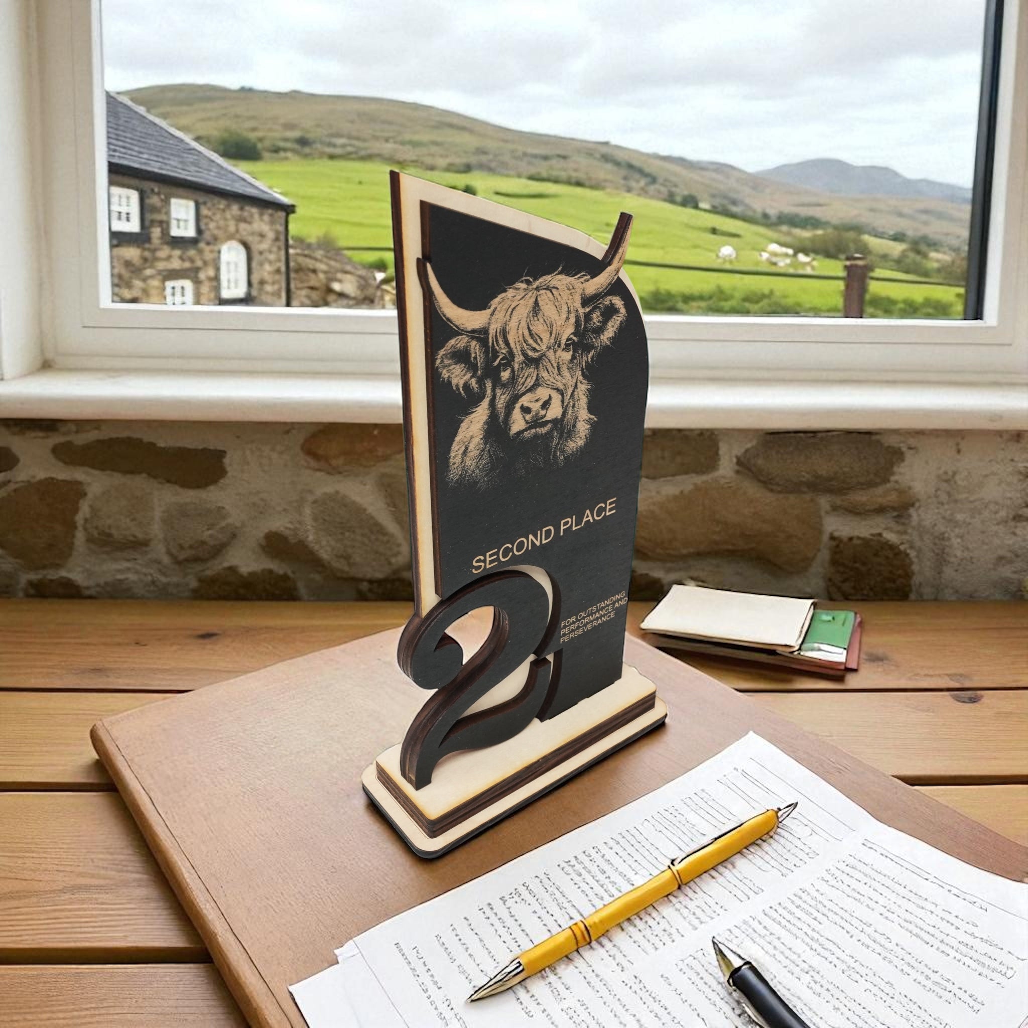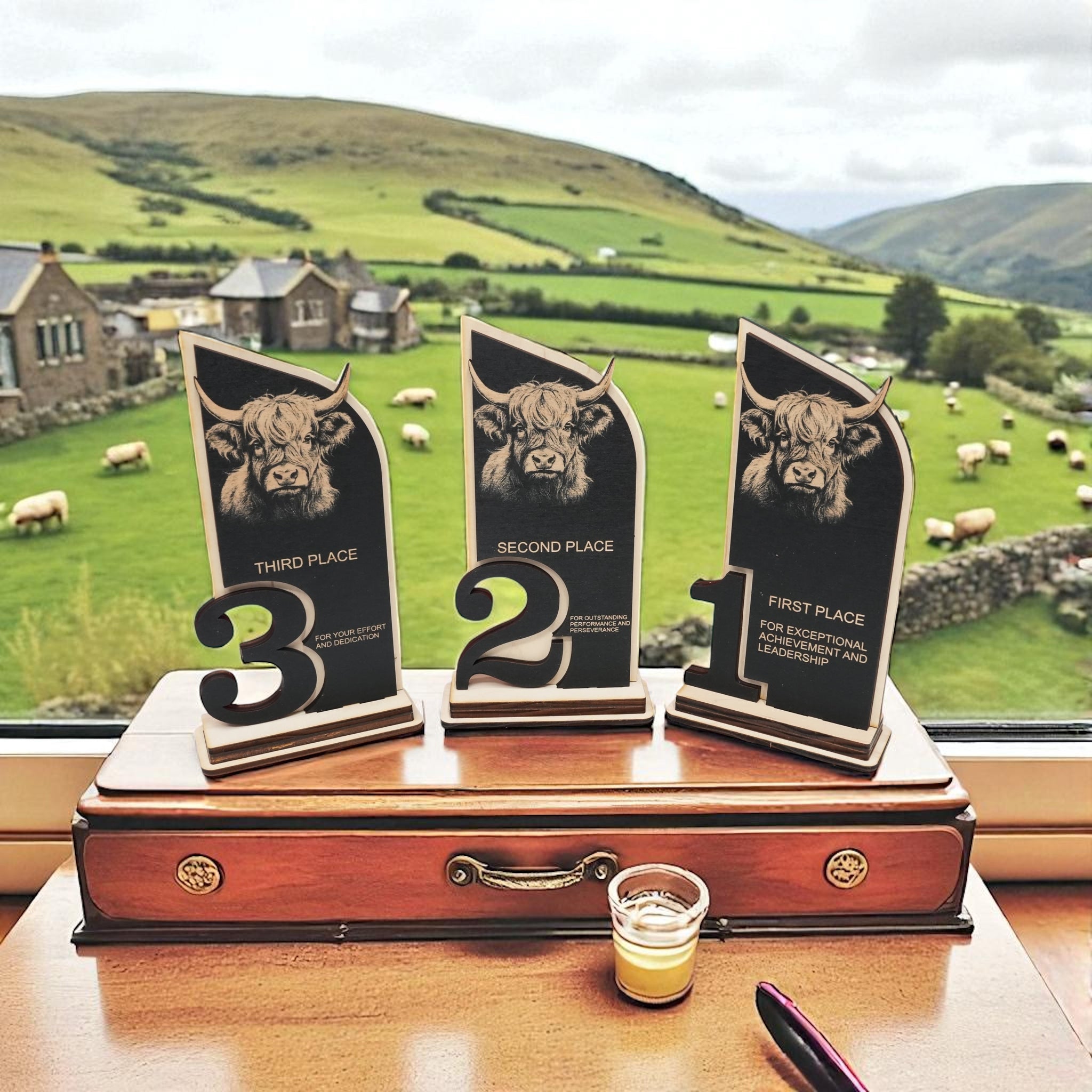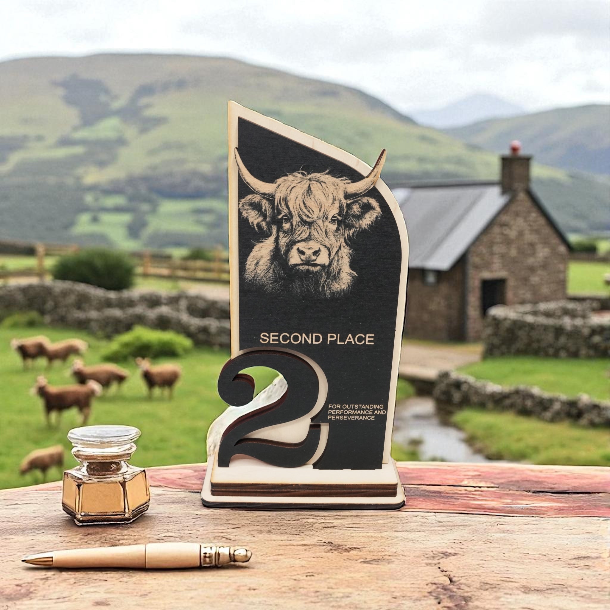 Trophy Award - CUSTOM - Highland Cow - 1st 2nd 3rd Place - 9x5 Inches