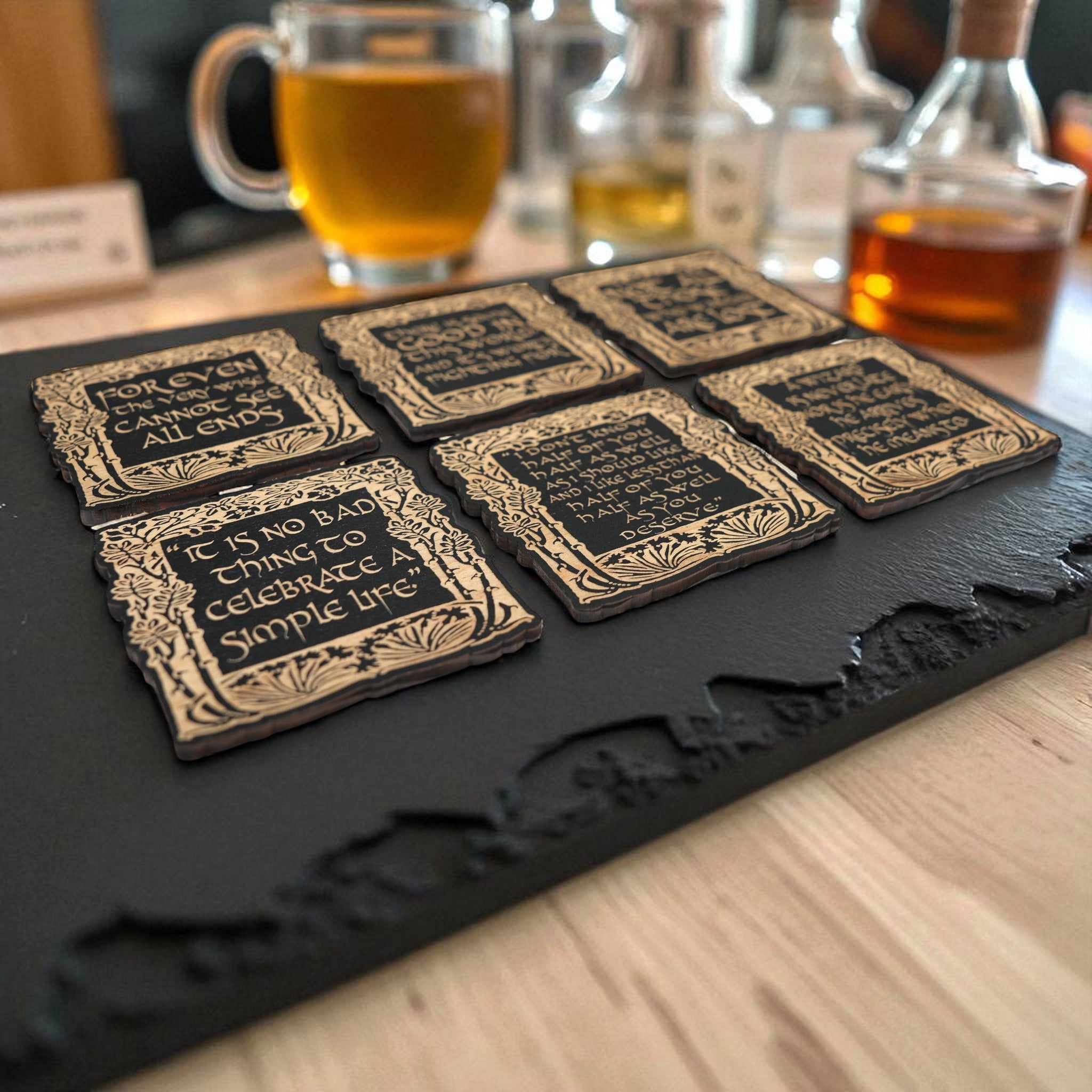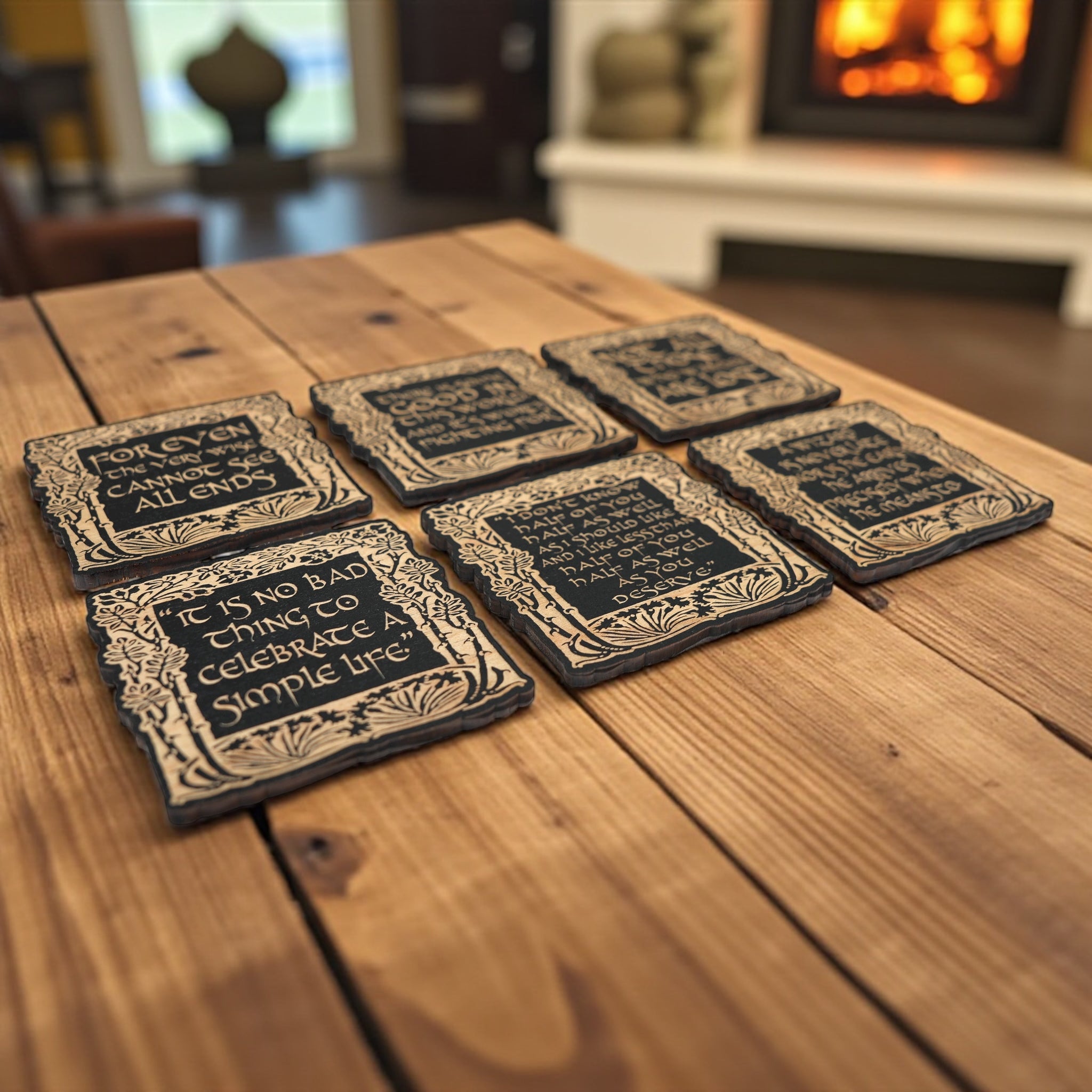 Coaster - BLACK - Fantasy Quotes Coaster Set of 6 Raw Wood