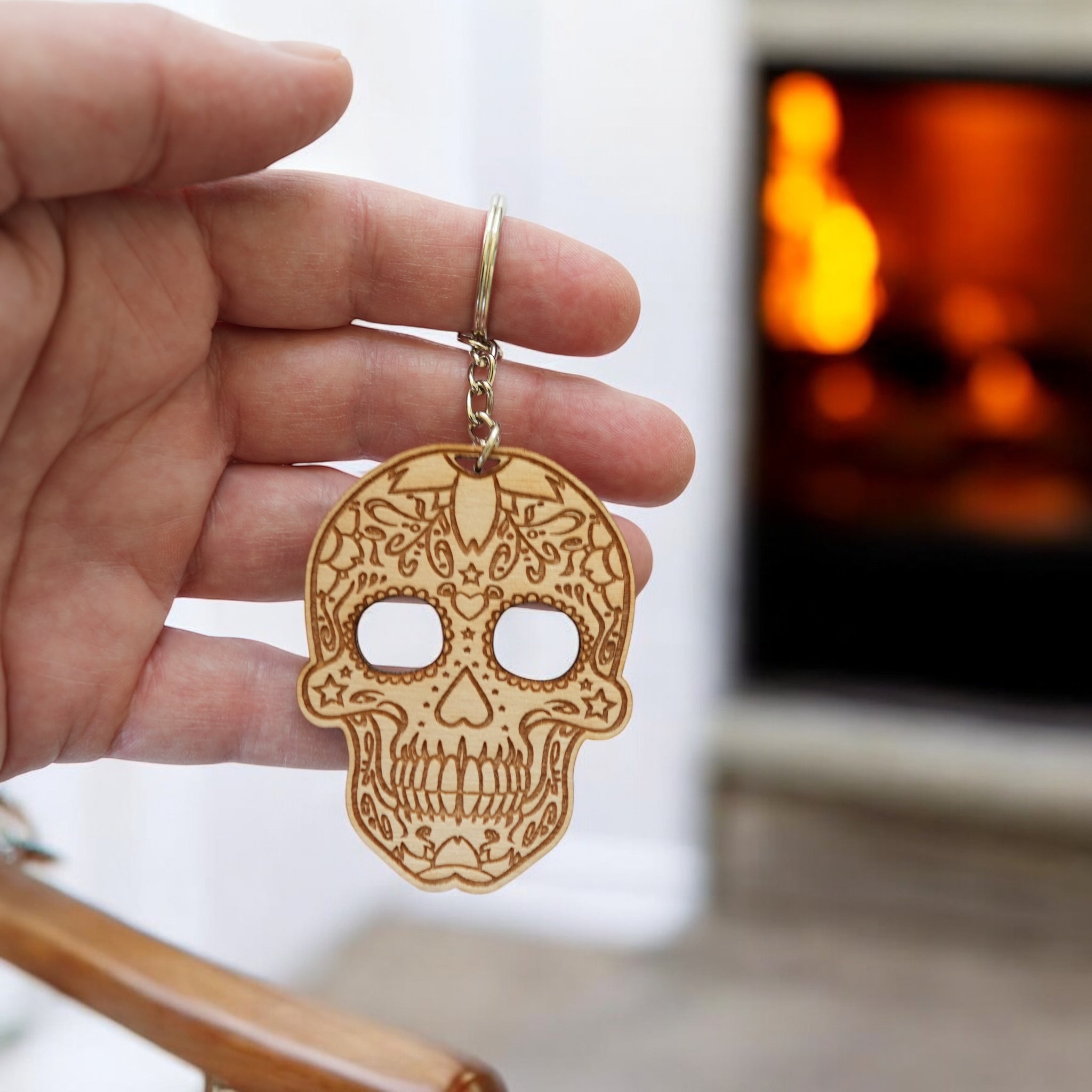 This birch wood Keychain features a 3" x 1.5" size and a durable key ring. Its 1/8" thickness ensures longevity.  Show off your style and keep your keys organized with this functional accessory.