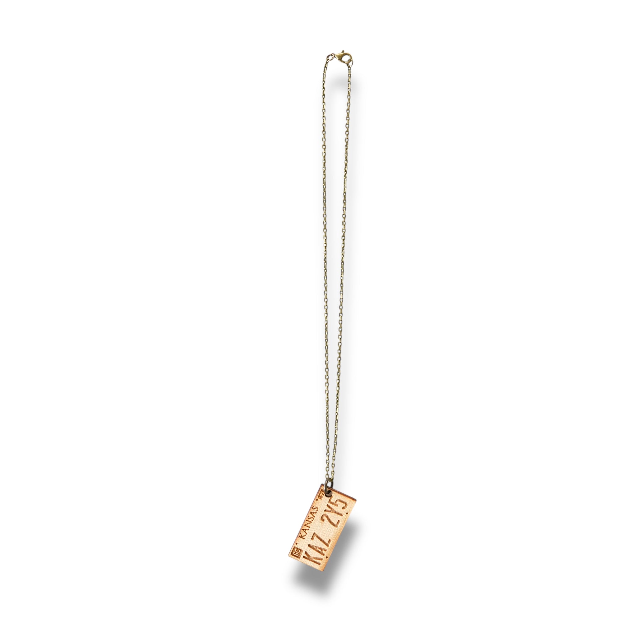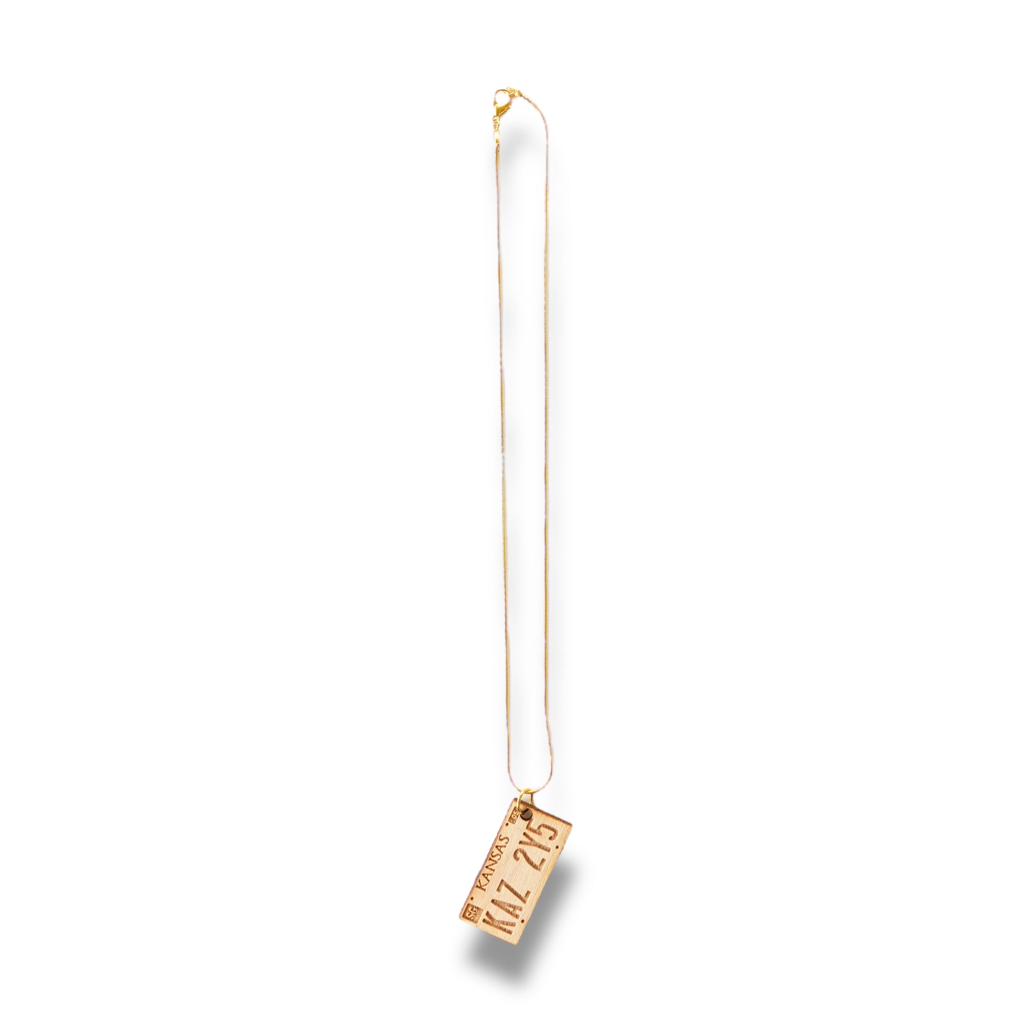 Necklace - Kansas License Plate - Key of Life Snake and Cable Link chains - Birch Wood