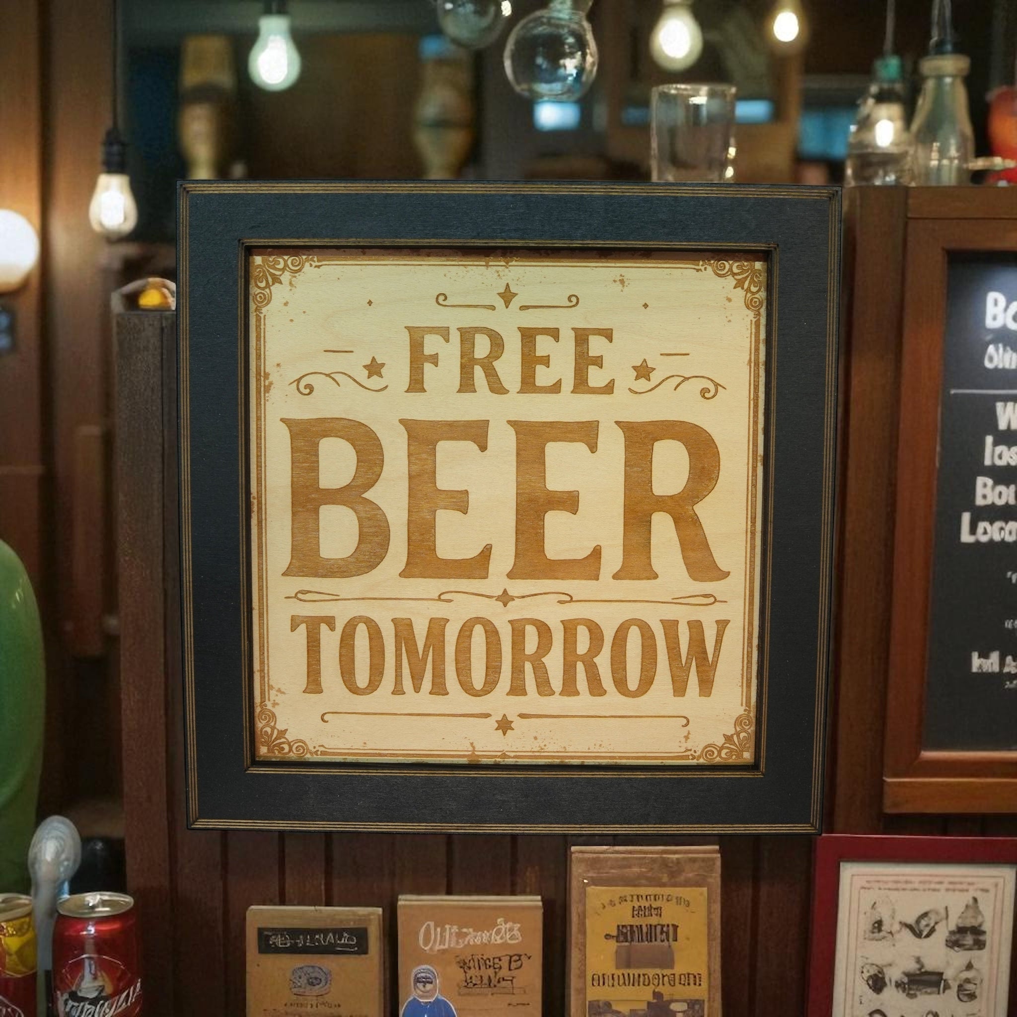 Framed Art - CUSTOM - Free beer tomorrow - Bar sign