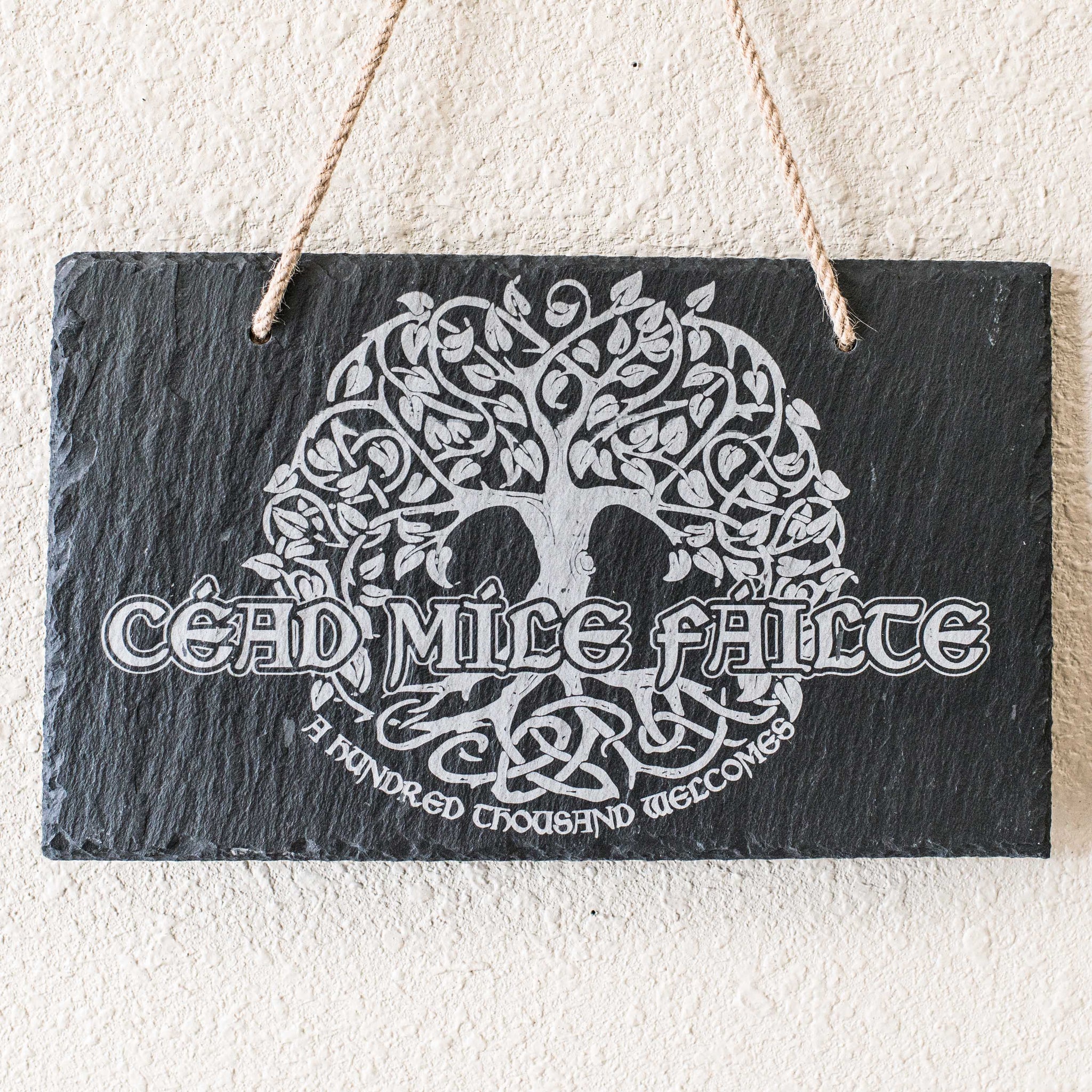 Add a touch of charm to your special space. Our natural slate decor can be displayed indoors. This is a great gift for a wedding or housewarming. Made of actual stone with chipped edges. 11 3/4 x 7" rectangle with unattached string for hanging.