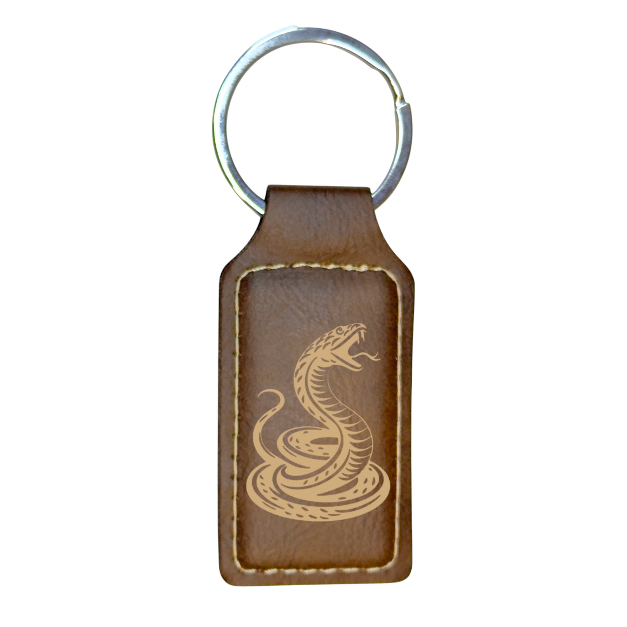Keychain - Rectangle - Coiled Snake - Leather